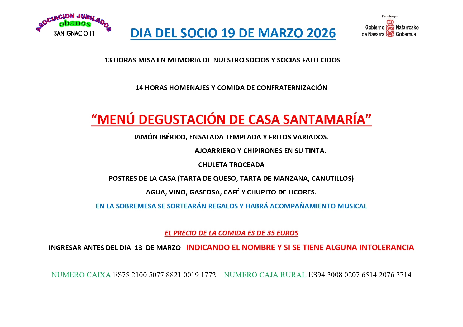 El próximo domingo, 15 de febrero, se celebrará a las 12,00 horas en primera convocatoria, y a las 12,30 horas en segunda convocatoria, LA JUNTA GENERAL ORDINARIA DEL CLUB DE JUBILADOS Y JUBILADAS DE OBANOS.