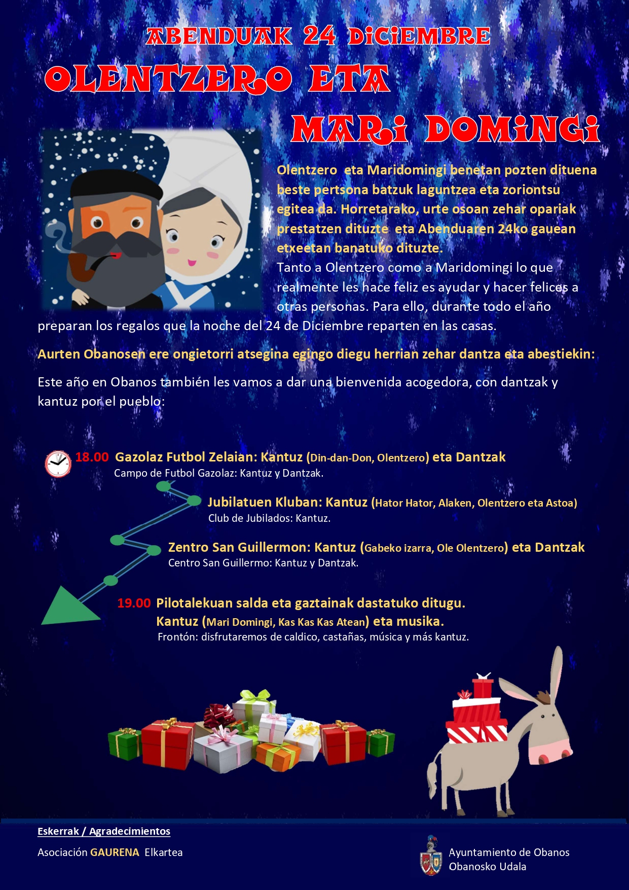 Obanosko Udaletik eta herriko hainbat elkarte eta kolektiboren laguntzarekin, Gabonetako programazio oso eta askotarikoa, eta publiko guztientzako bat aurkezten dizuegu. (...)