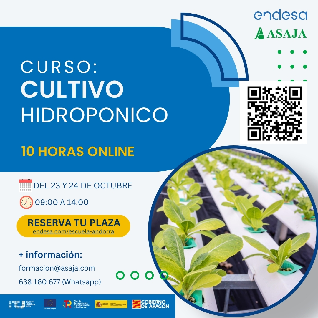 Próximo curso “Cultivo hidropónico” (10 h), previsto realizar on line (en streaming) los días 23 y 24 de octubre de 9 a 14 horas en colaboración con ASAJA, por consideráis poder dar difusión.
