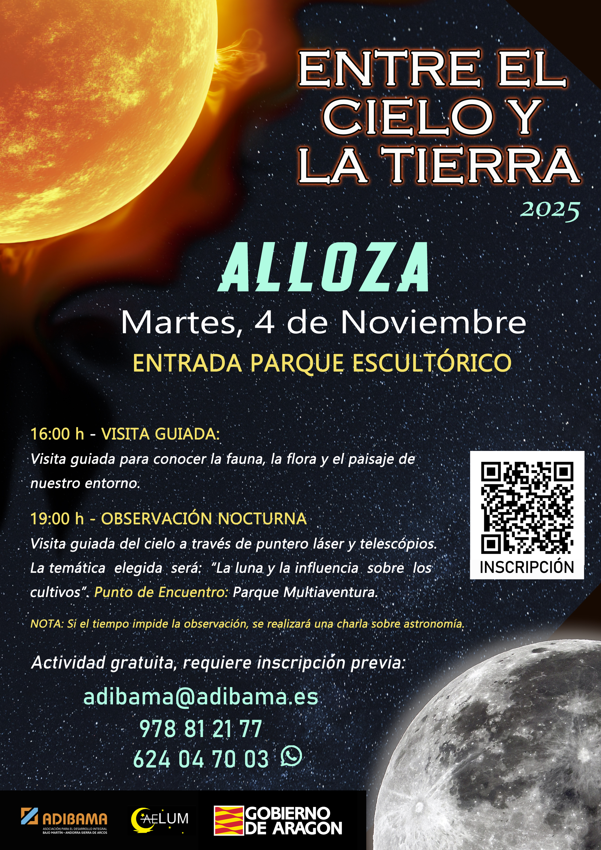 En el marco del ciclo de visitas guiadas que denominamos “Entre el Cielo y la Tierra” ofertamos la última programada. Tendrá lugar en Alloza, el próximo día 4 de noviembre, martes, con el siguiente desarrollo: