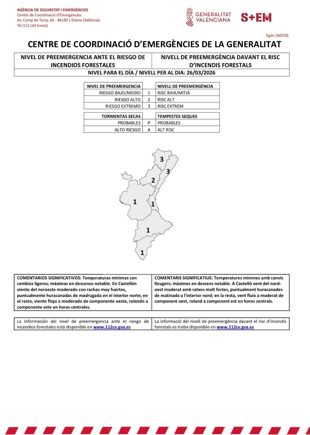 🗣️🏫 El Ayuntamiento de Oropesa del Mar informa que la provincia castellonense continúa en nivel de riesgo extremo incendios forestales durante este jueves 26 de marzo.