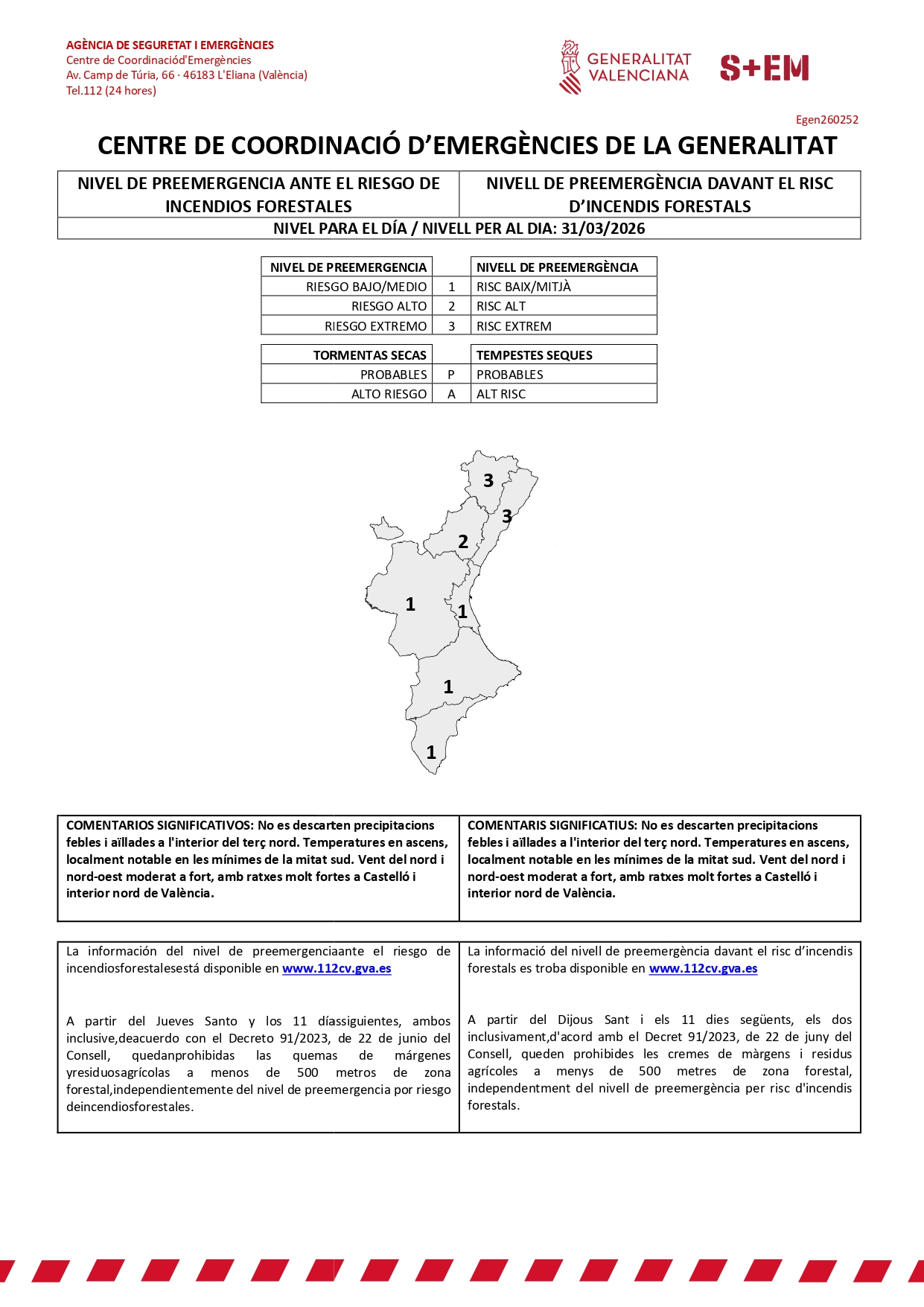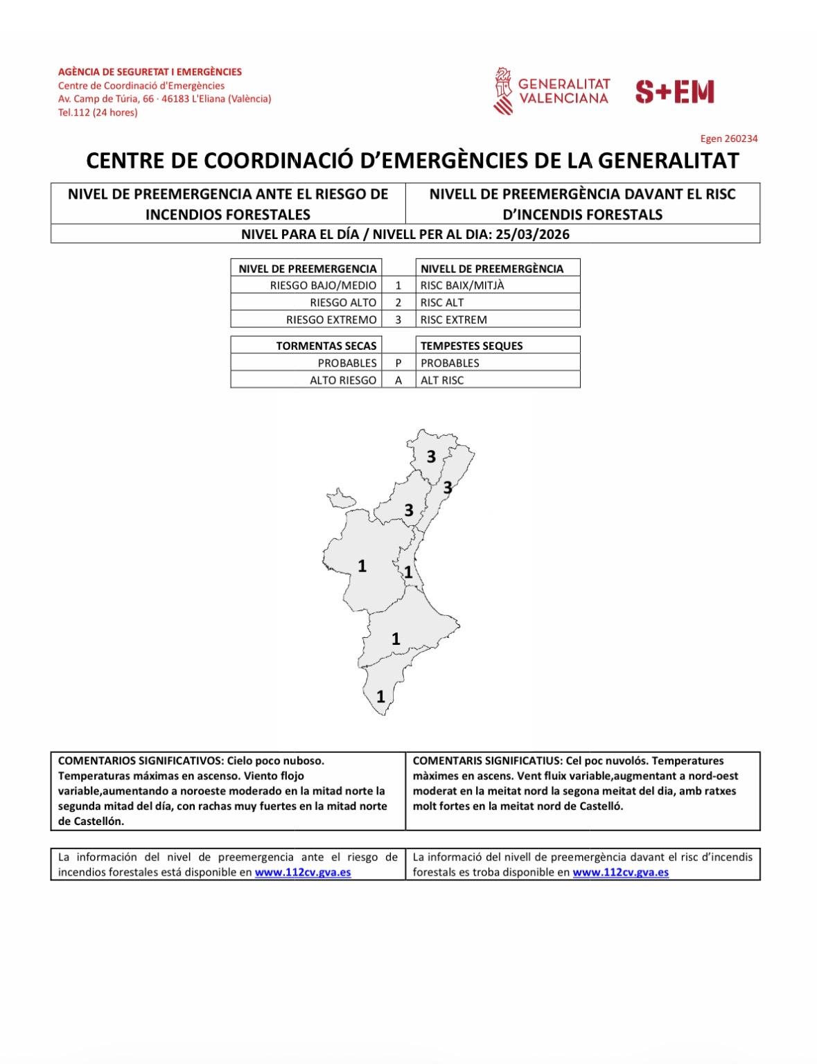 🗣️🏫 L'Ajuntament d'Orpesa informa que aquest dimarts, 31 de març, estarem en nivell 3 de preemergencia davant el risc d'incendis forestals.