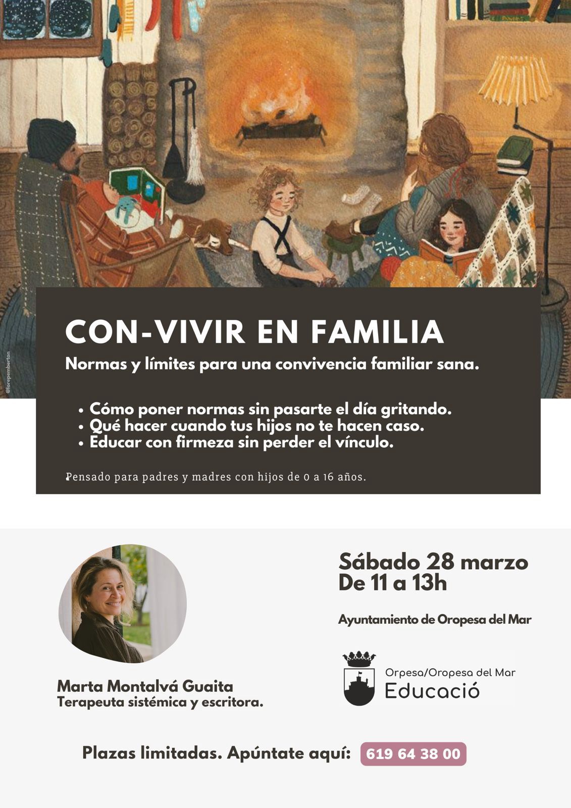 🗣️🏫 L'Ajuntament d'Orpesa, a través de la regidoria d'Educació, recorda que avui Dissabte 28 de març tindrà lloc el següent taller gratuït per a pares i mares del municipi.
