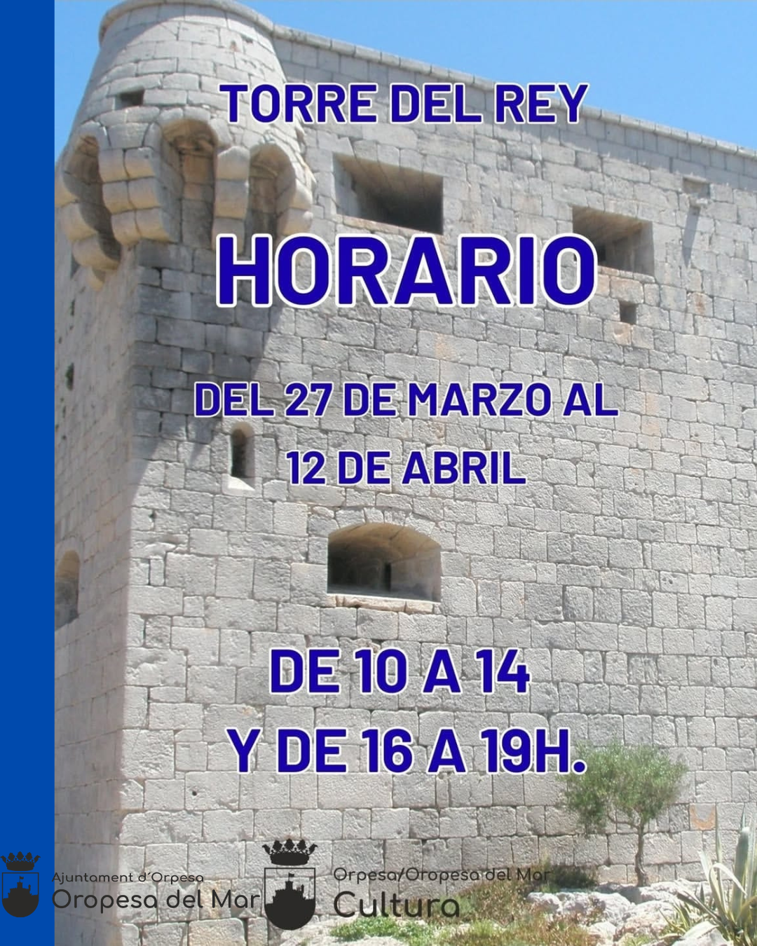 🗣️🏫 L'Ajuntament d'Orpesa, a través de les regidories de Cultura i Patrimoni, informa que ja es pot visitar la Torre del Rei fins al 12 d'abril.