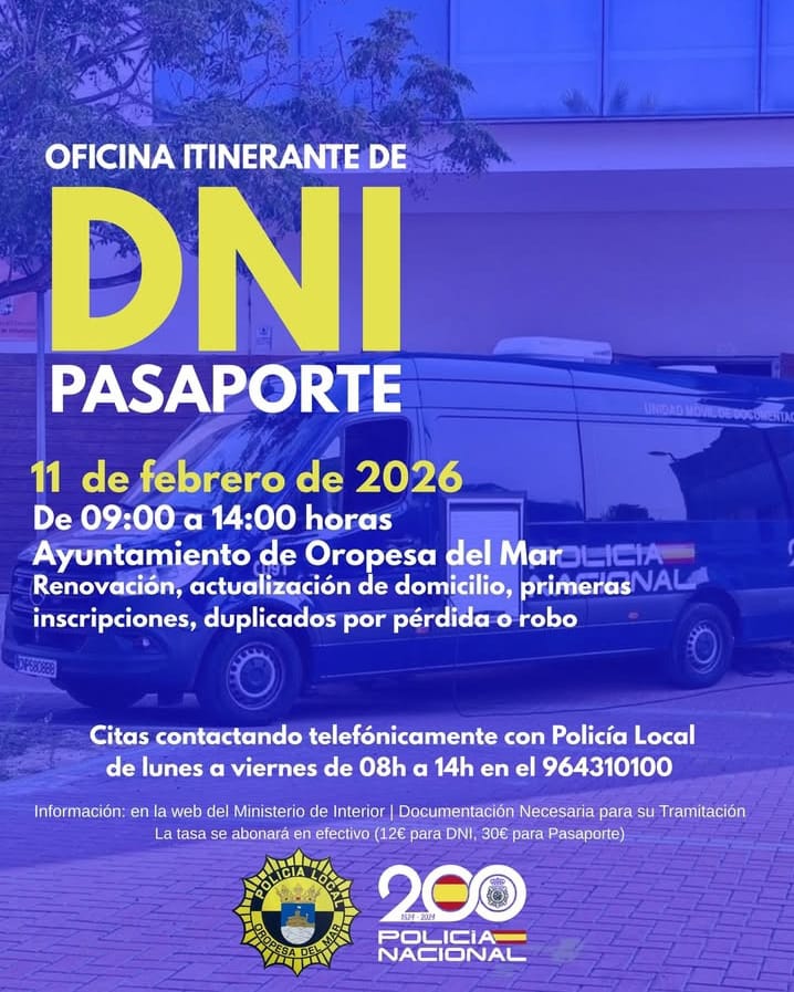 RENUEVA TU DNI O PASAPORTE EN OROPESA DEL MAR - MIÉRCOLES 11 DE FEBRERO DE 2026