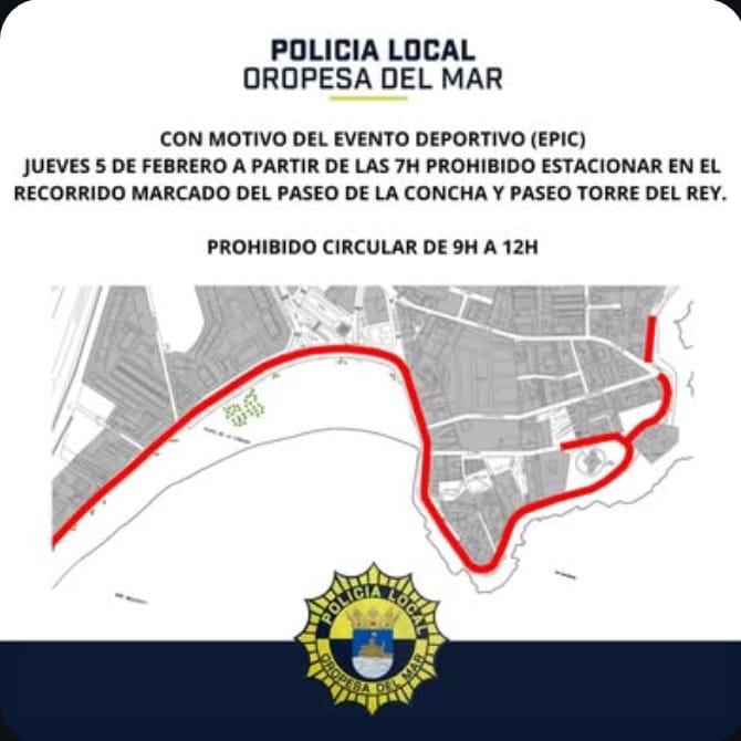 🗣️🏫 El Ayuntamiento de Oropesa del Mar, a través de las concejalías de Deportes y Policía, informa que habrá restricciones al tráfico durante la celebración de la prueba ciclista internacional Mediterranean Epic.