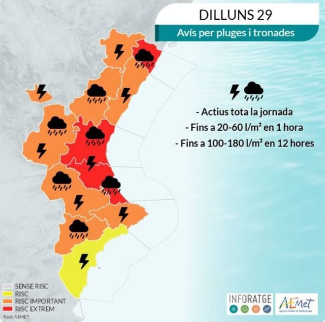 🗣️🏫 L'ajuntament d'Orpesa informa que demà, Dimarts 30 de Setembre, el nostre municipi es trobarà sense alerta per fortes pluges o tempestes.