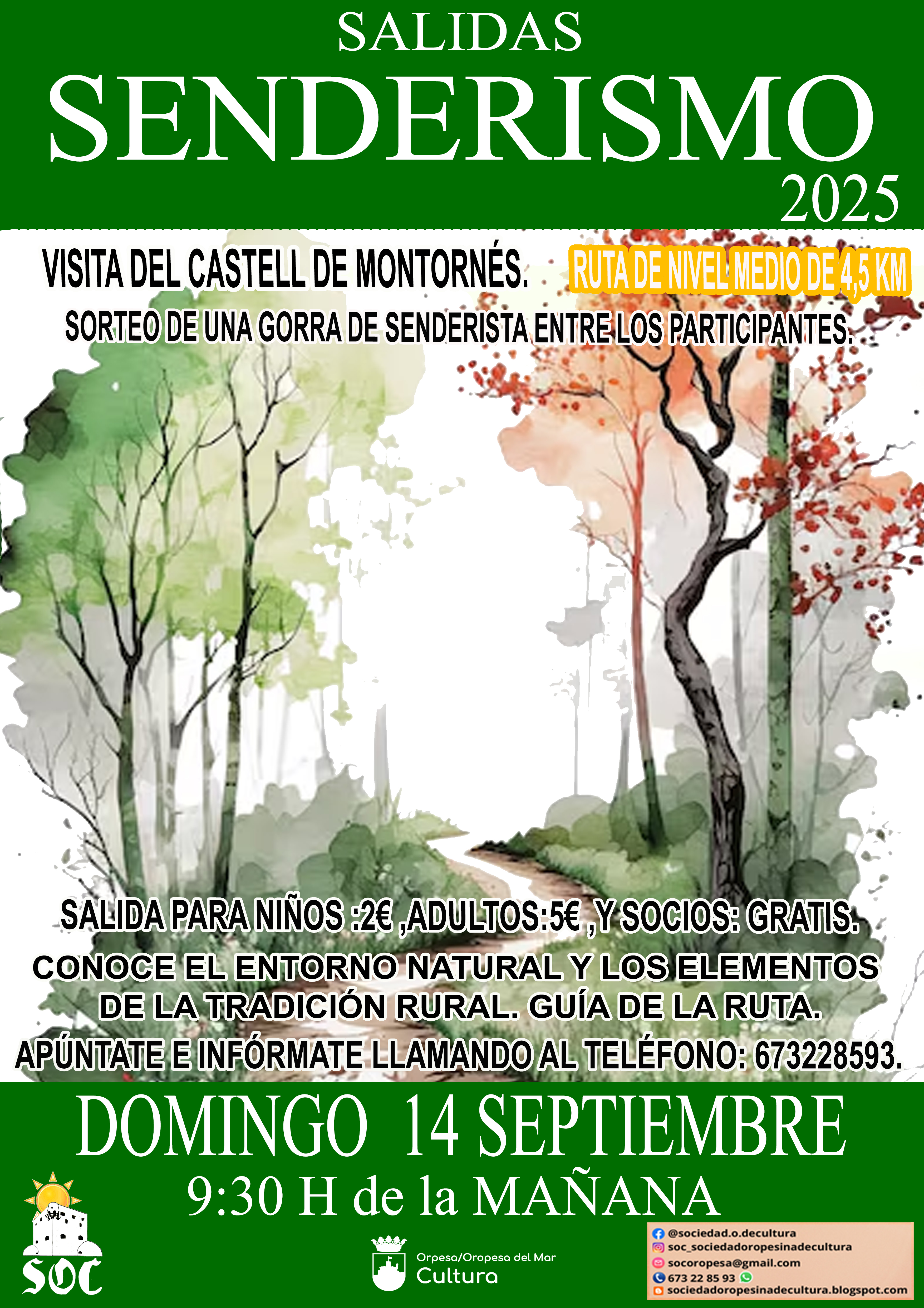 🗣️🏫 El Ayuntamiento de Oropesa del Mar, a través de la concejalía de Cultura, informa que el próximo Domingo 14 de Septiembre tendrá lugar la salida senderista al Castillo de Montornés, organizado por la Sociedad Oropesina de Cultura (SOC).