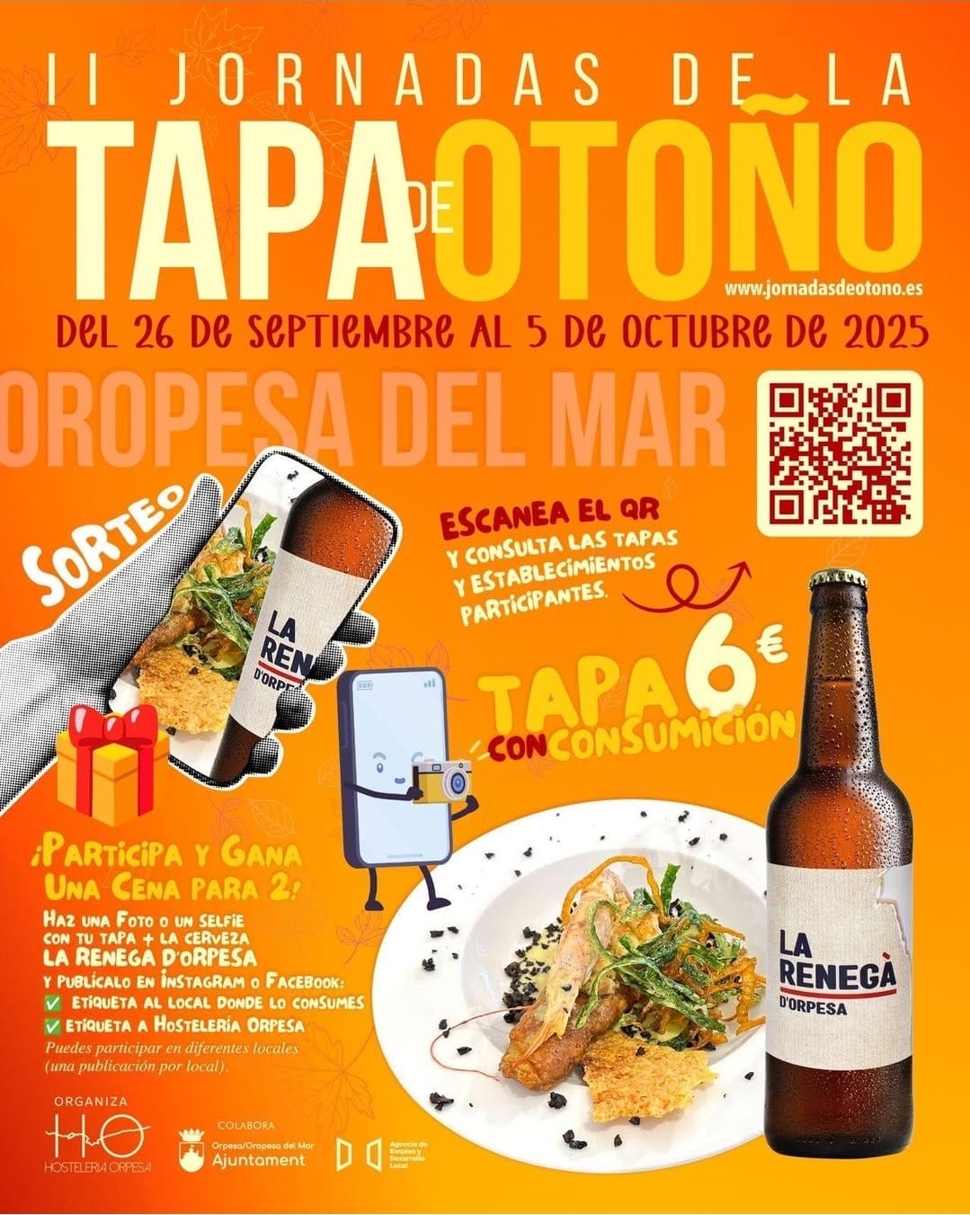 🗣️🏫 El Ayuntamiento de Oropesa del Mar, a través de la concejalía de Empleo, Desarrollo Local, Comercio y Emprendedurismo, en colaboración con la Asociación de Hostelería local, informa que hoy comienzan las II Jornadas de la Tapa de Otoño.