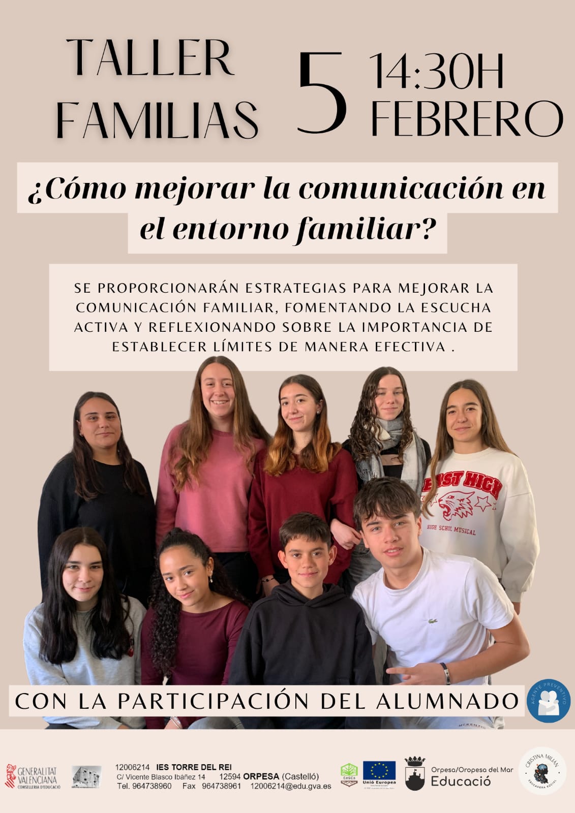 🗣️🏫 L'Ajuntament d'Orpesa, a través de la regidoria d'Educació, informa que el pròxim 5 de febrer comptarem amb el taller 'Com millorar la comunicació en l'entorn familiar?'.