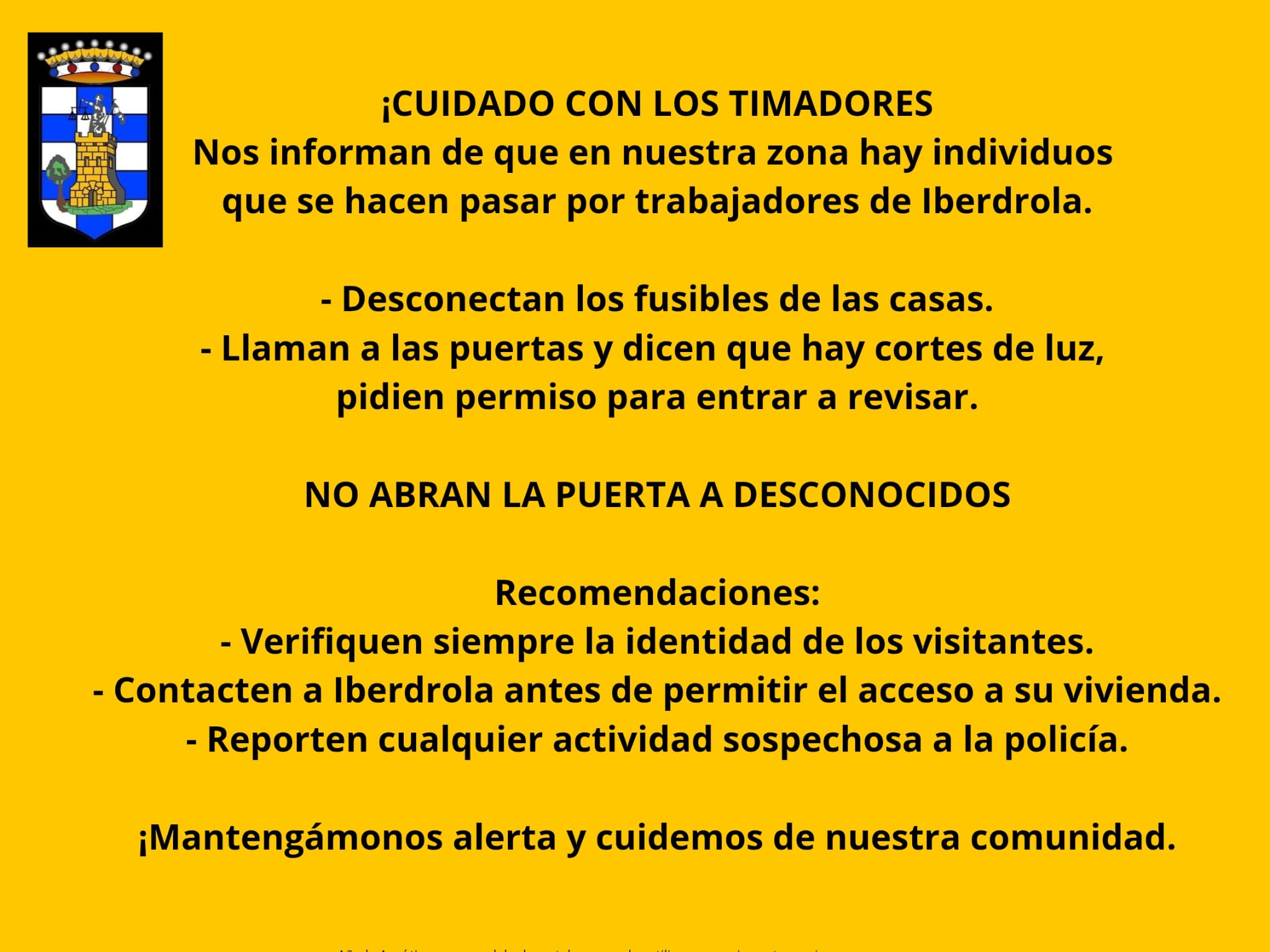 Hemos recibido información de que en Oropesa hay personas que se hacen pasar por trabajadores de Iberdrola para acceder a viviendas.