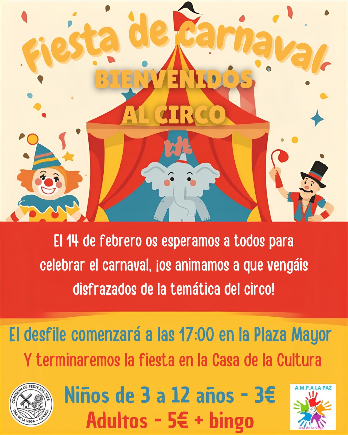 Este 14 de febrero prepárate para vivir una tarde mágica con nuestra Fiesta de Carnaval con temática de circo 🤹♀️🎭