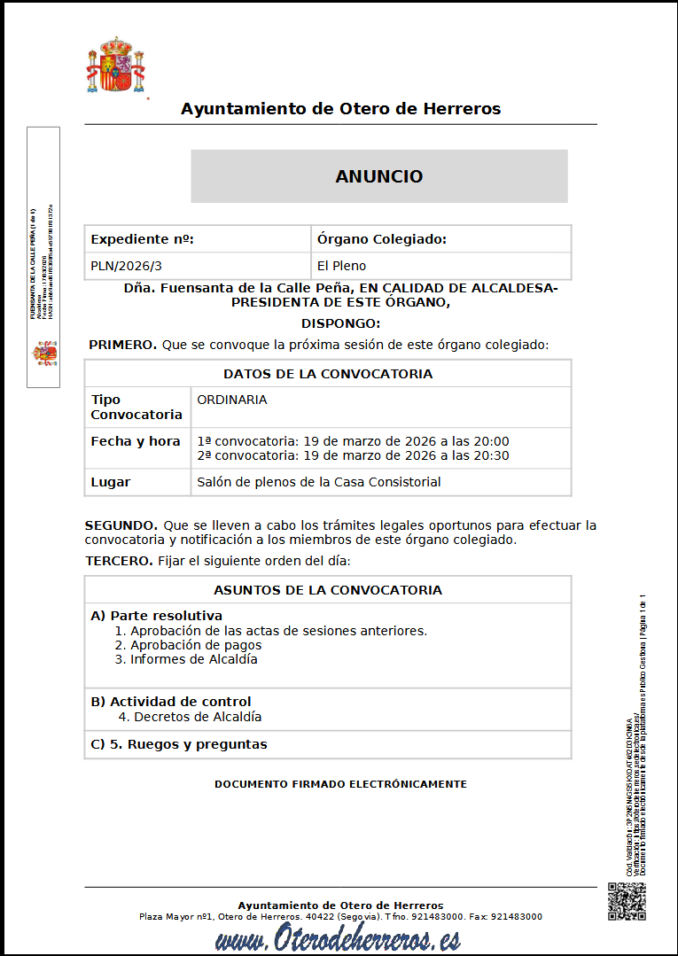 Audio Pleno Extraordinario celebrado en en Exmo Ayuntamiento de Otero de Herreros el pasado 18 de Febrero de 2026