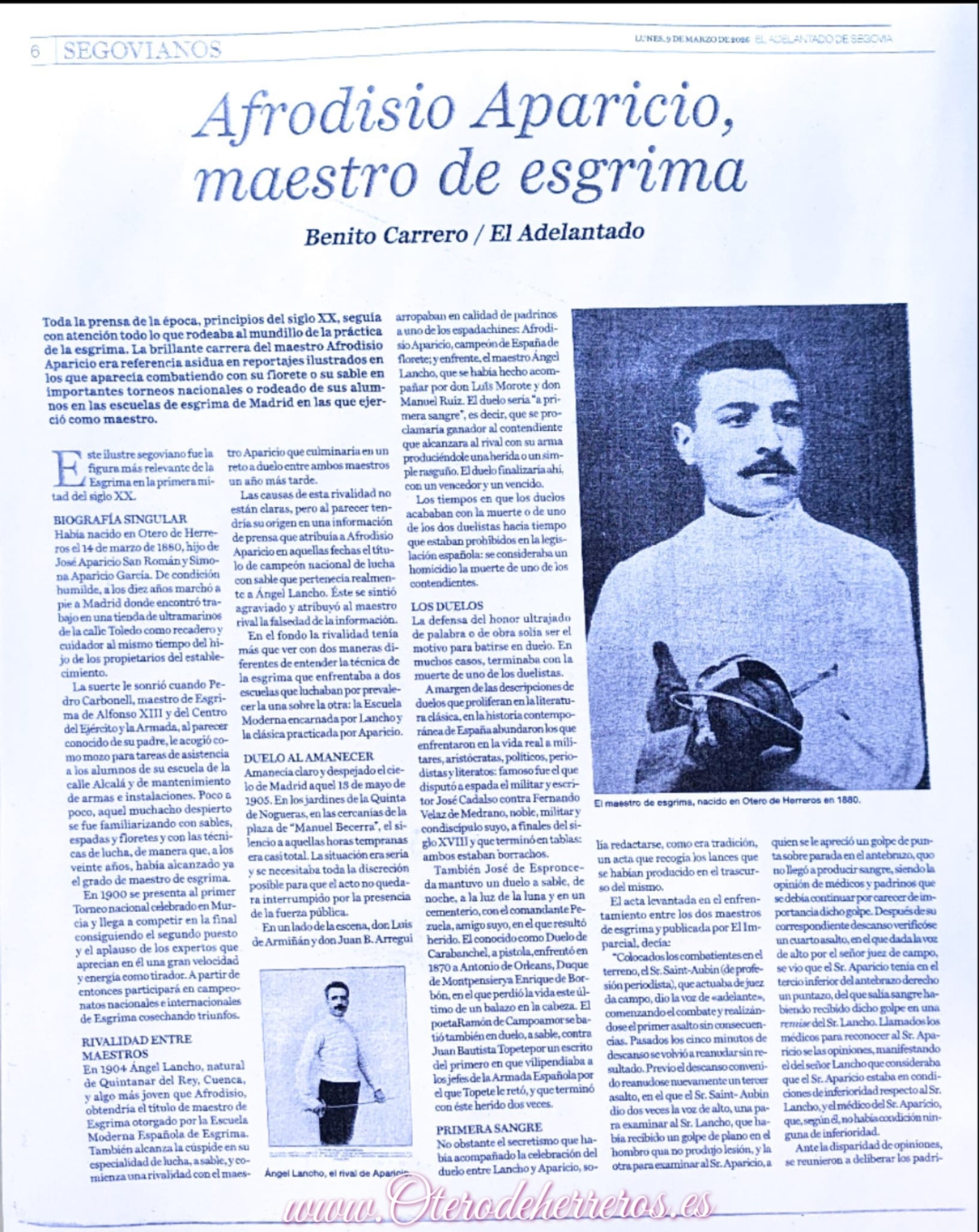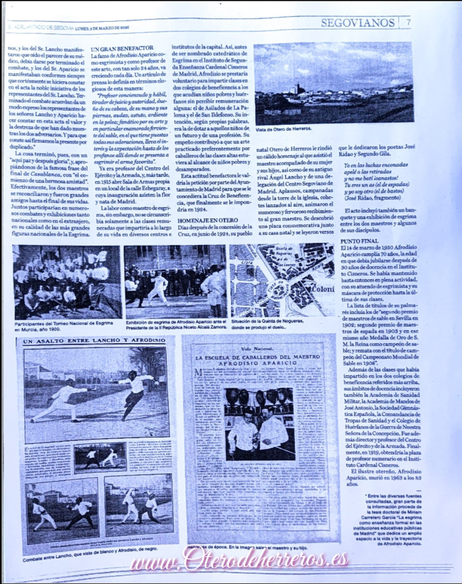 el pasado día 9 de Marzo de 2026 en el periódico.Publican un reportaje Sobre el Ilustre Afrodisio Aparicio tan arraigado a nuestro Municipio