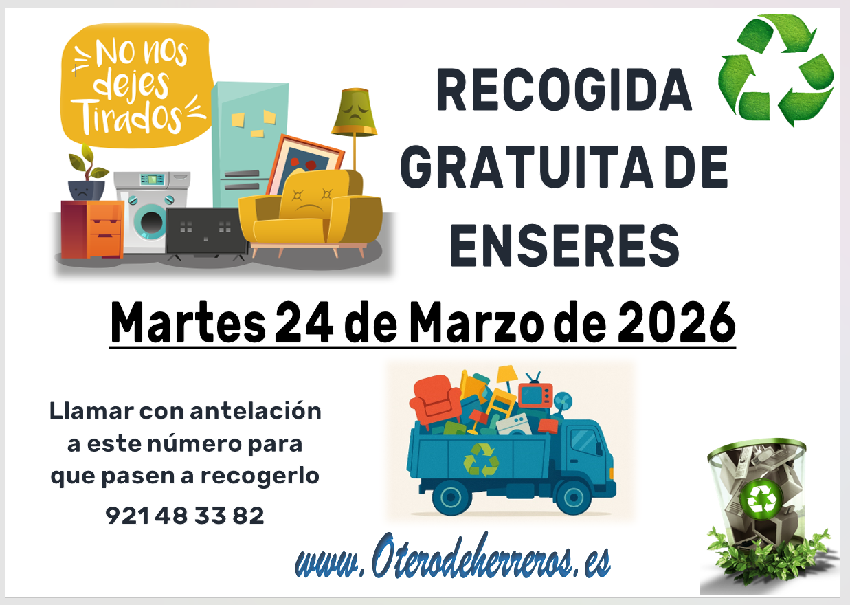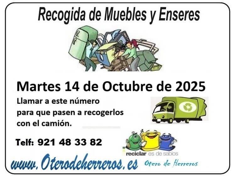 Para usar el servicio de recogida de Enseres, se deberá llamar al número que aparece en el cartel con antelación indicando que se tiene que retirar y donde.