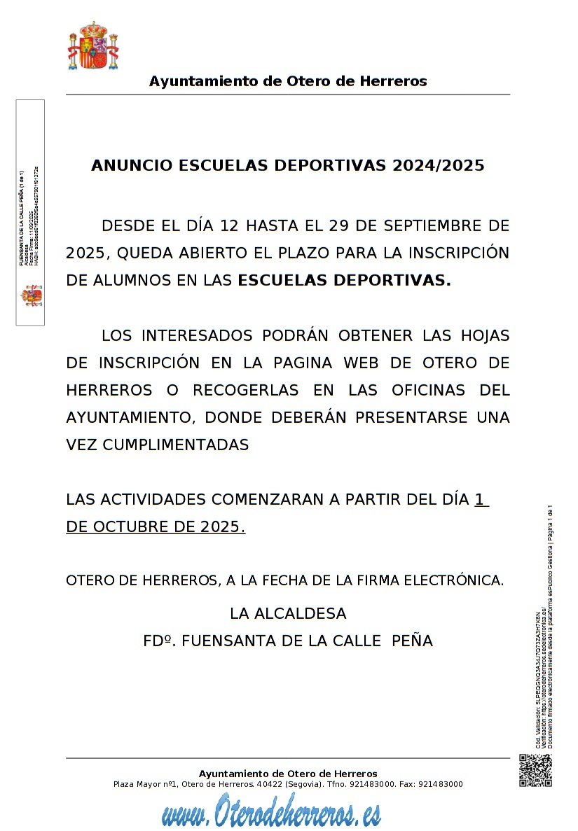 LOS INTERESADOS PODRÁN OBTENER LAS HOJAS DE INSCRIPCIÓN EN LA PAGINA WEB DE OTERO DE HERREROS O RECOGERLAS EN LAS OFICINAS DEL AYUNTAMIENTO, DONDE DEBERÁN PRESENTARSE UNA VEZ CUMPLIMENTADAS