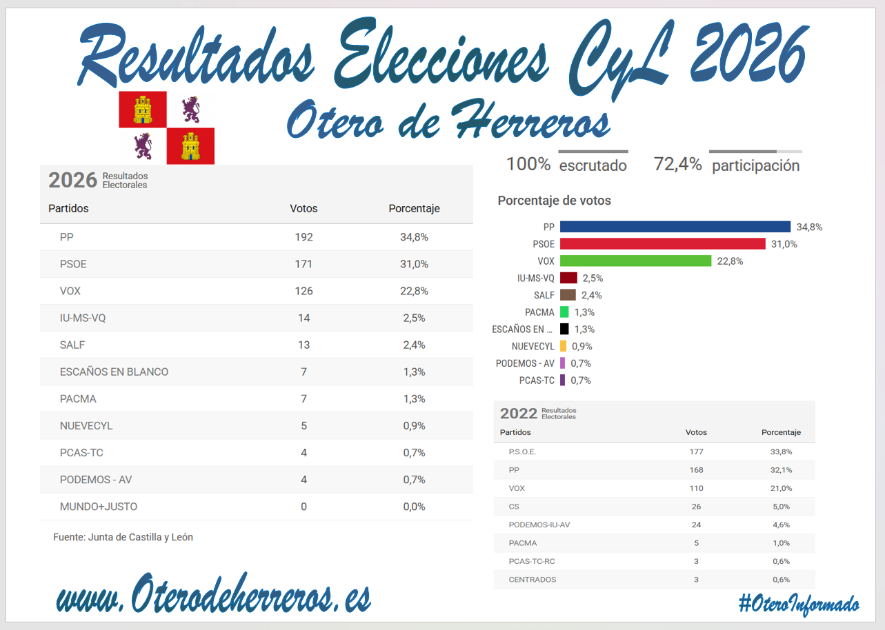 Resultado Elecciones Castilla y León 15 de Marzo de 2026 en Otero de Herreros