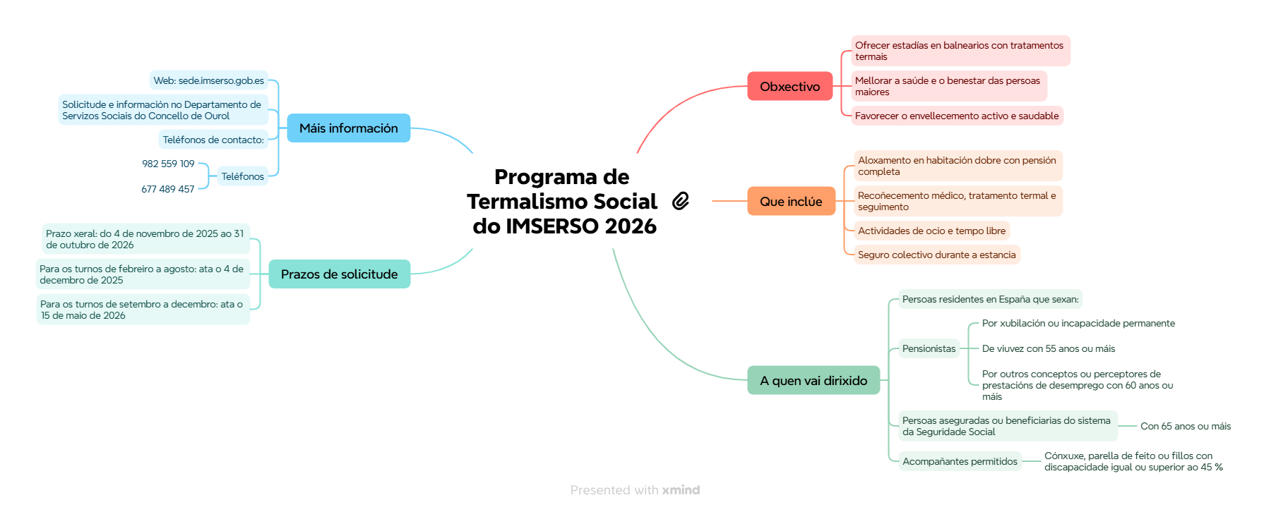 O programa ofrece estadías en balnearios con tratamentos termais para mellorar a saúde e o benestar das persoas maiores, favorecendo o envellecemento activo e saudable.