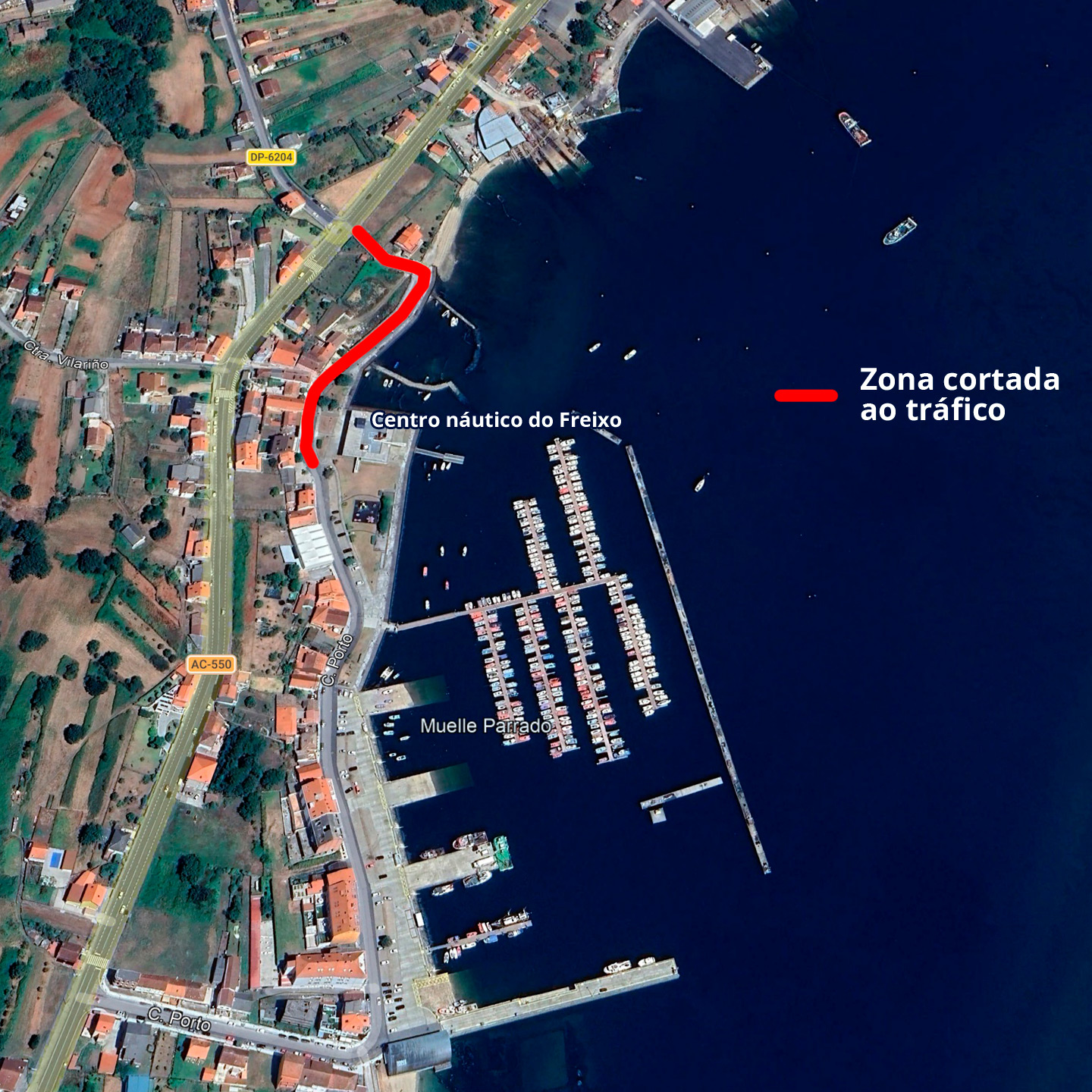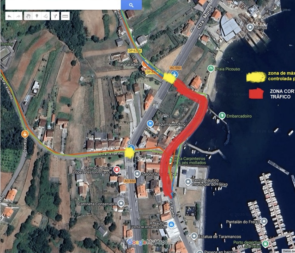 O tramo cortado, que pode verse na imaxe adxunta, será o que vai dende o centro náutico ata o cruce da estrada xeral AC-550.