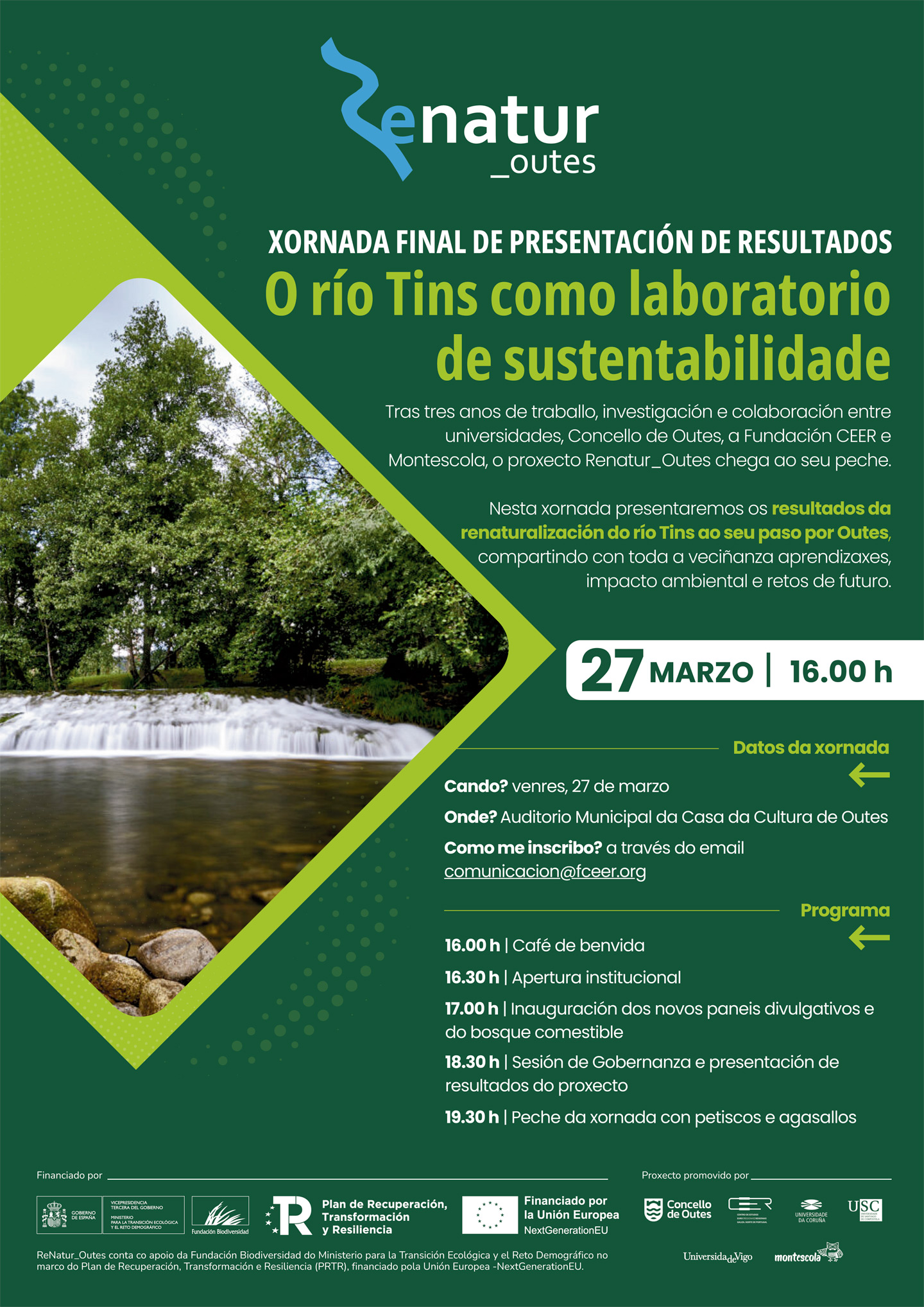 📢 Tras tres anos de traballo, investigación e colaboración entre universidades, o Concello de Outes, a Fundación CEER e Montescola, o proxecto Renatur_Outes chega ao seu peche.