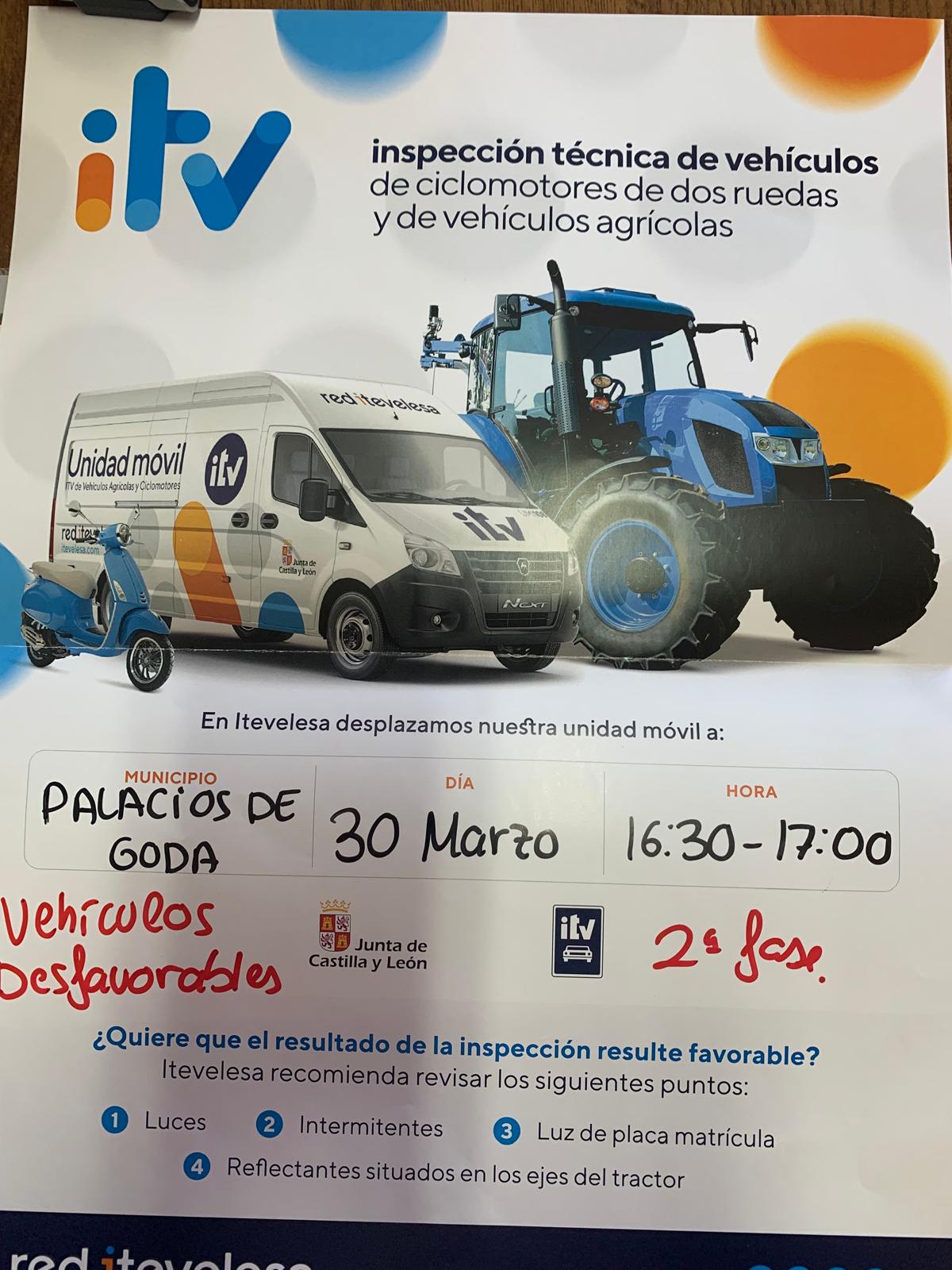 SE INFORMA A LOS INTERESADOS QUE SE DESPLAZARA LA UNIDAD MÓVIL PARA LA INSPECCIÓN DE VEHICULOS AGRICOLAS Y CICLOMOTORES DE DOS RUEDAS DE MAS DE 3 AÑOS DE ANTIGÜEDAD