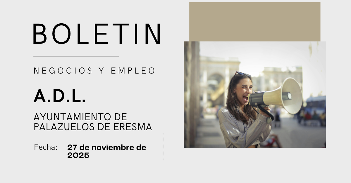 Ya puede consultar o descargar el nuevo boletín informativo de la Agencia de Desarrollo Local del Ayuntamiento de Palazuelos de Eresma, correspondiente al 27 de noviembre 2025.