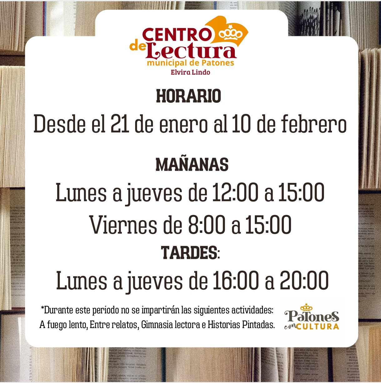 📚 horario del centro de lectura, del 21ene. al 10feb.
