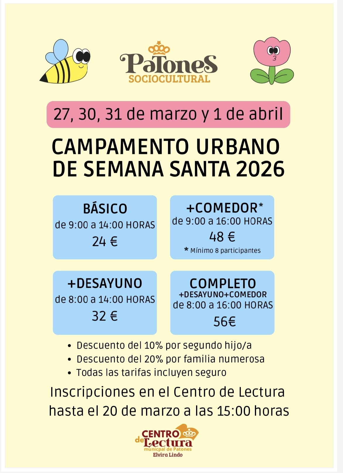 ✍🏻 inscripciones, en el Centro de Lectura "Elvira Lindo" hasta el 20 de marzo (o completar las plazas).