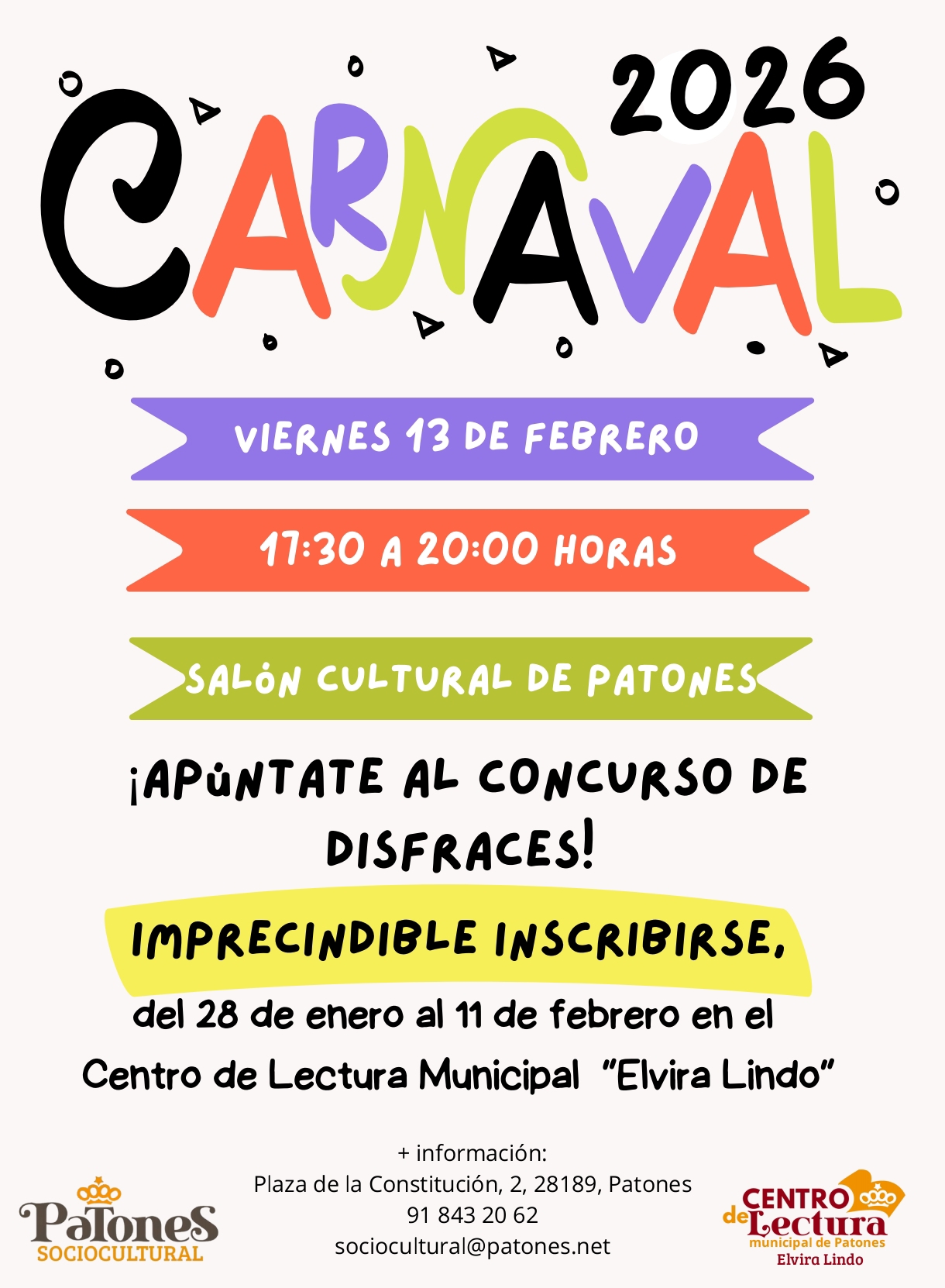📝 Imprescindible inscribirse al concurso de disfraces (del 28 de enero al 11 de febrero)