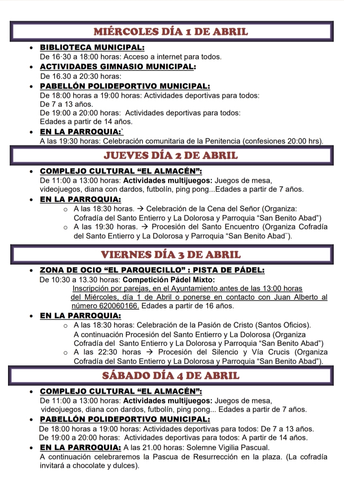A partir del día 5 de agosto y hasta el día 9, ambos inclusive, se desarrollará la Feria y Fiestas 2026 en nuestra localidad. Comenzará el día 5 con el encendido del alumbrado y la degustación de la sangría popular como viene siendo habitual. Concursos, torneos, juego(...)