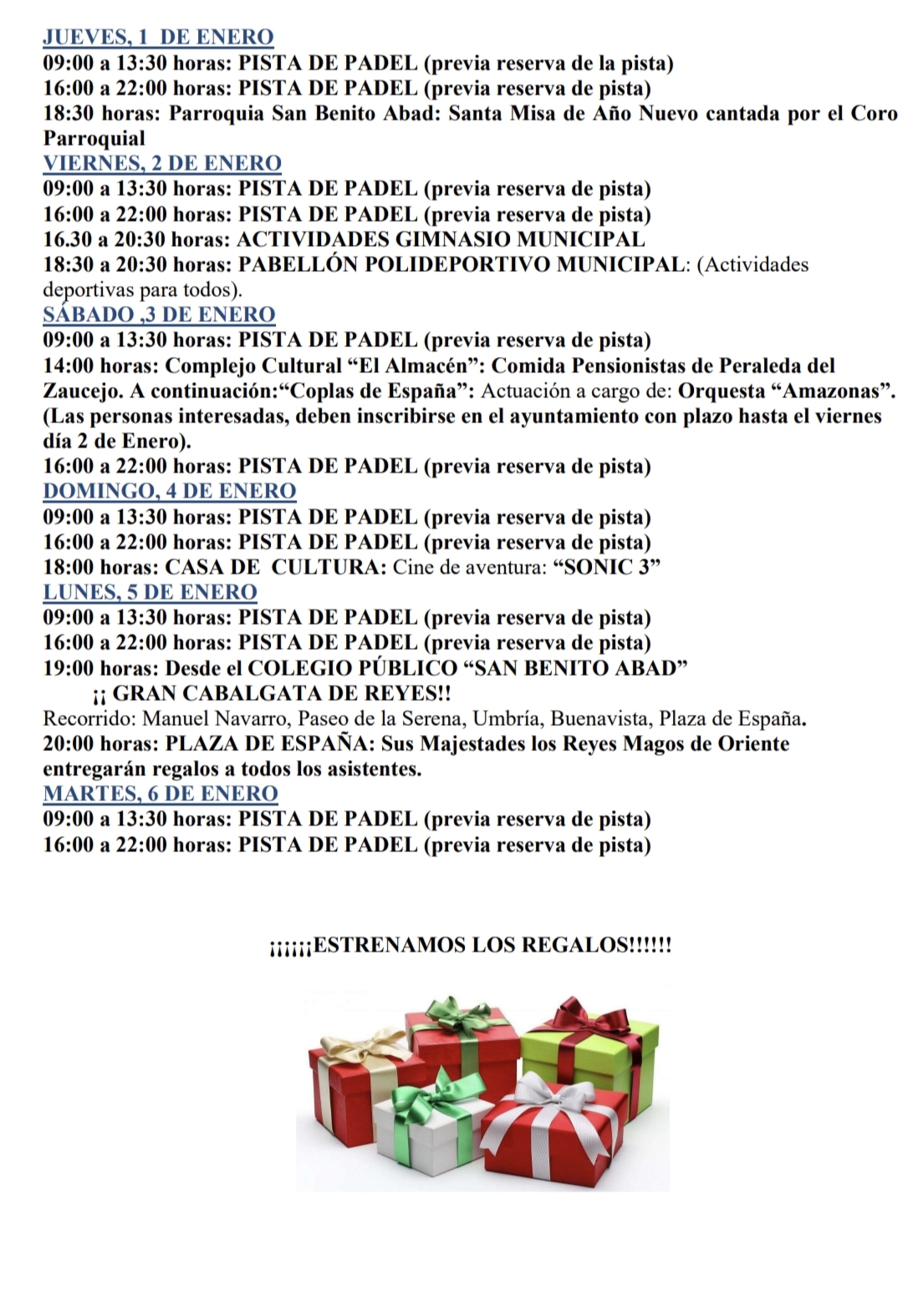 El próximo viernes, día 5 de Diciembre, en la Plaza de España a las 17:30 horas el Excmo. Ayuntamiento de Peraleda organiza un Teatro con un recorrido de Animación de Calle con el show "Locomotion 2.0" realizado por el grupo Teatrapo perteneciente al programa D’Rule artistas en el territorio perteneciente a la Diputación de Badajoz. A continuación se adjunta i(...)