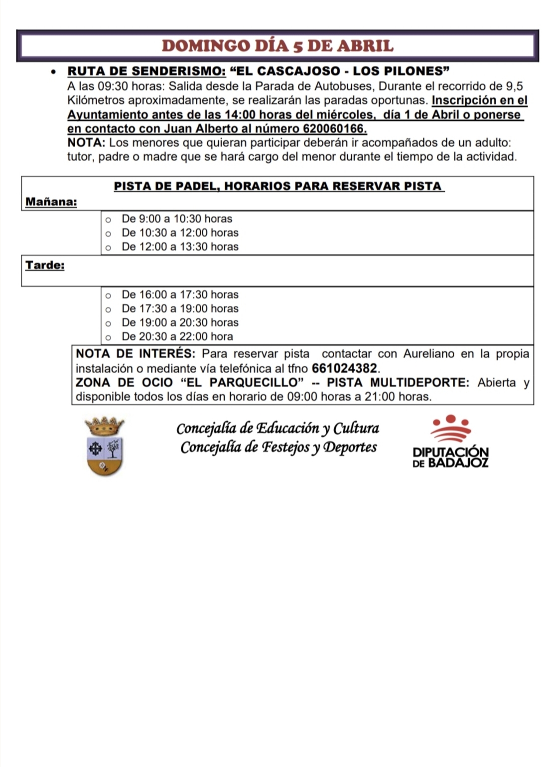 El próximo Sábado, 28 de febrero , el Ayuntamiento de Peraleda del Zaucejo organiza un Viaje a Badajoz a la Feria de Mayores de Extremadura, jornada con actividades sociales, educativas, recreativas, gastronómicas, actuaciones musicales... Los pensionistas de la localidad interesados en inscribirse, pueden hacerlo en el Ayuntamiento(...)