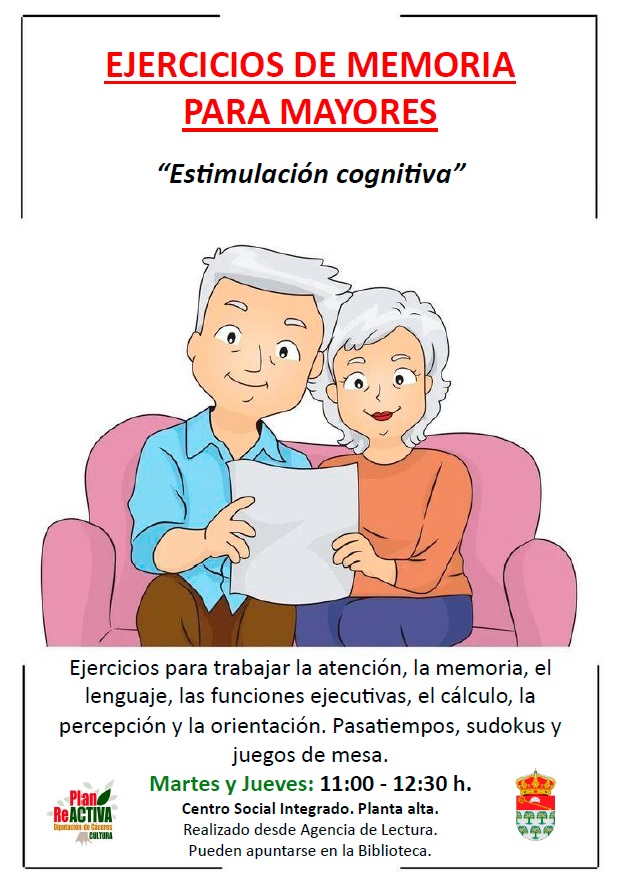 Las personas interesadas podrán realizar actividades para trabajar la atención, la memoria, el lenguaje, el cálculo, la percepción y la orientación. También se propondrán pasatiempos, sudokus y juegos de mesa.