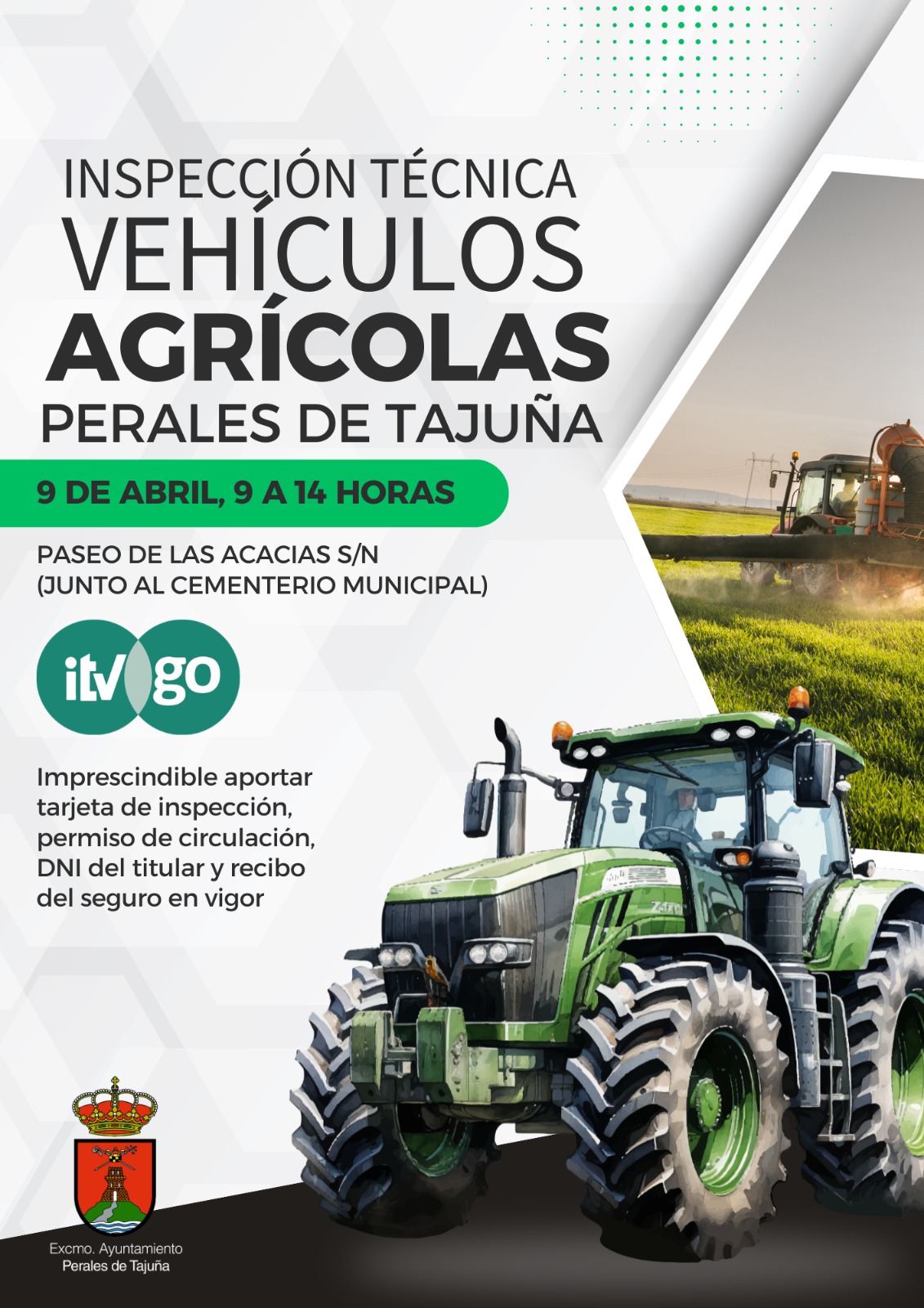 Jornada de revisión técnica de vehículos agrícolas (ITV) en Perales de Tajuña para tractores, remolques, y cosechadoras.
