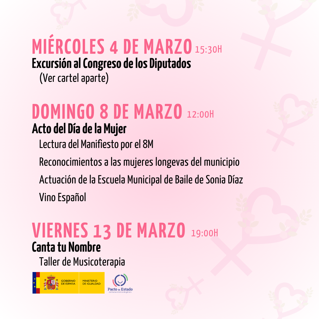 Perales se suma a los actos con motivo del Día de la Mujer y lo hace con una excursión al Congreso de los Diputados, un taller de musicoterapia y la jornada central del 8M en la que, como es tradición, homenajearemos a nuestras vecinas de más edad en un acto para reivindicar el papel de las mujeres en nuestro pueblo.