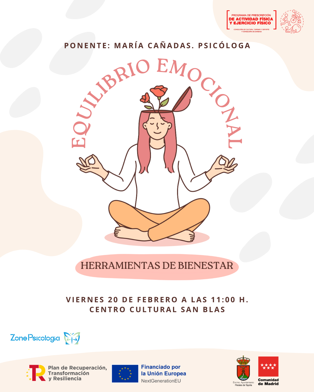 La charla, 'Equilibrio emocional. Herramientas de bienestar', se celebrará el viernes 20 de febrero, a las 11 horas, en el Centro Cultural 'San Blas'.