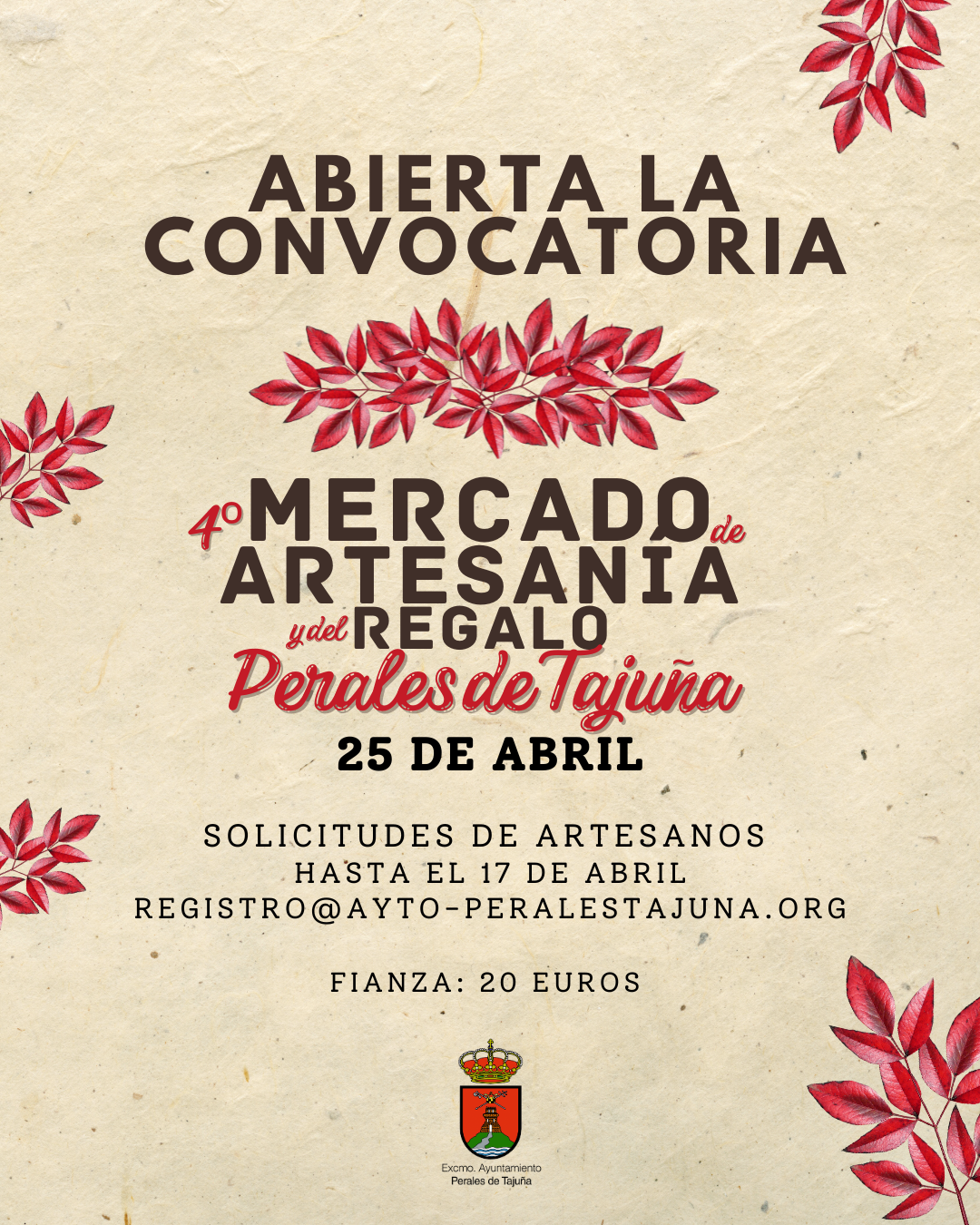 Hasta el 17 de abril está abierta la convocatoria para participar en la IV edición del Mercado de Artesanía y del Regalo de Perales de Tajuña, que se celebrará el 25 de abril.