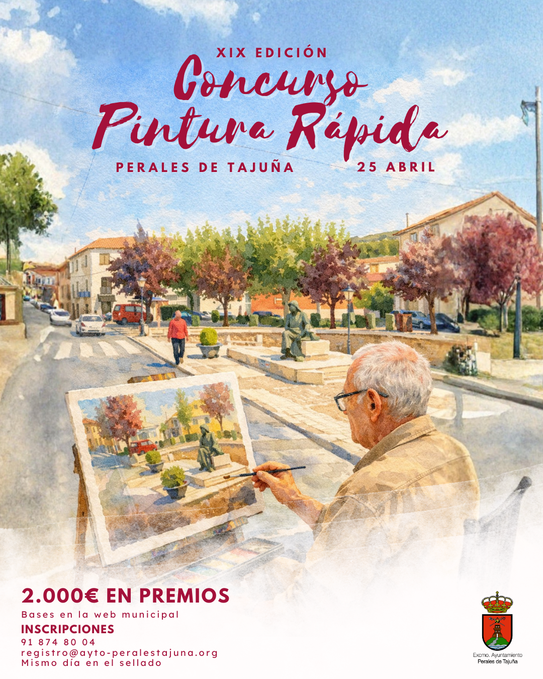 El próximo 25 de abril, en Perales se pinta ¡muy rápido! Vuelve el Concurso de Pintura Rápida, que celebra su XIX edición, y lo hace con hasta 2.000 euros en premios.