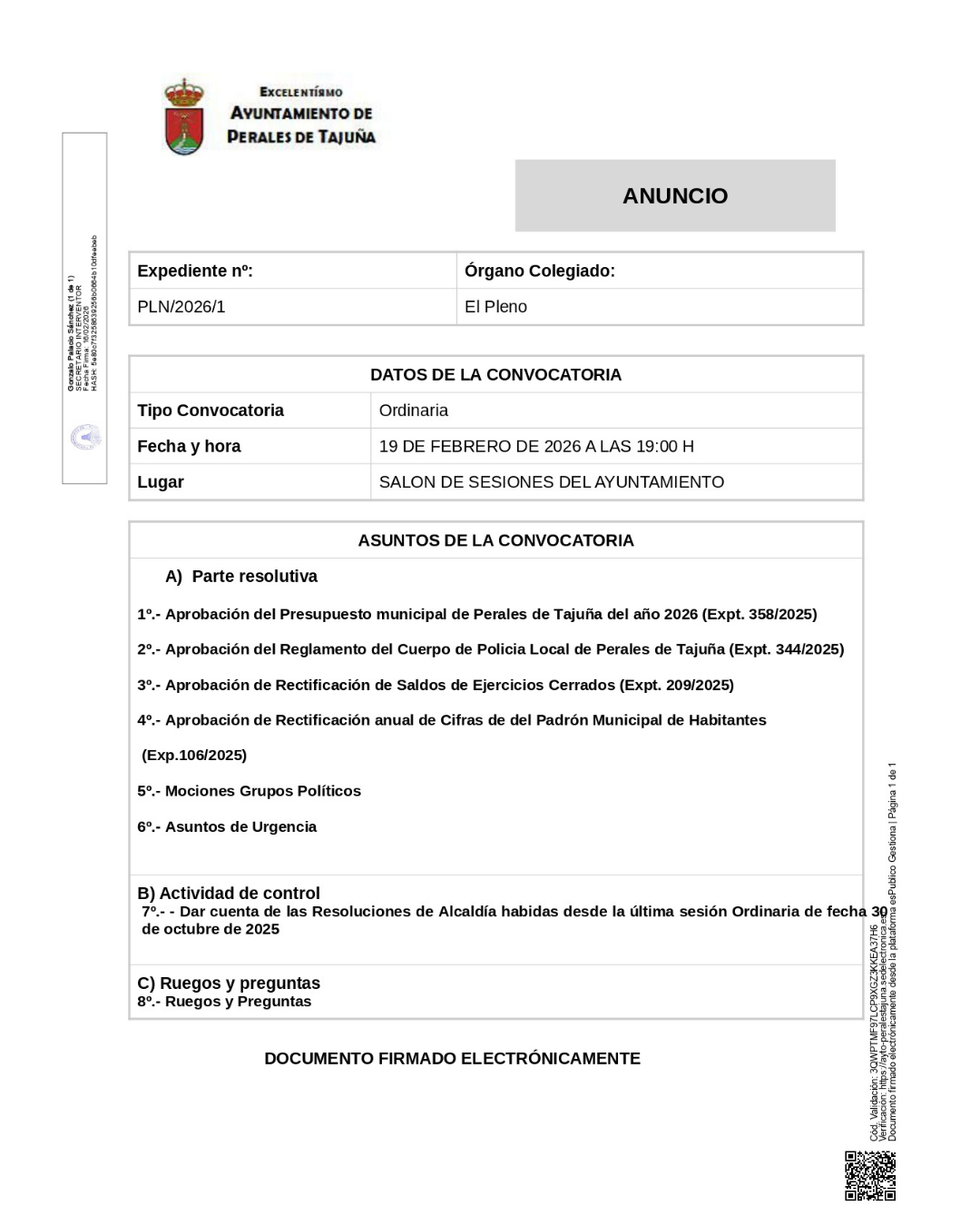 27 de marzo de 2026.- El pleno del Ayuntamiento de Perales de Tajuña aprobó, este jueves, el inicio de las obras de la nueva Casita de Niños. El proyecto con una inversión cercana a los 2,5 millones de euros, financiada con cargo al Programa de Inversión Regional (PIR) de la Comunidad de Madrid 2022-2(...)