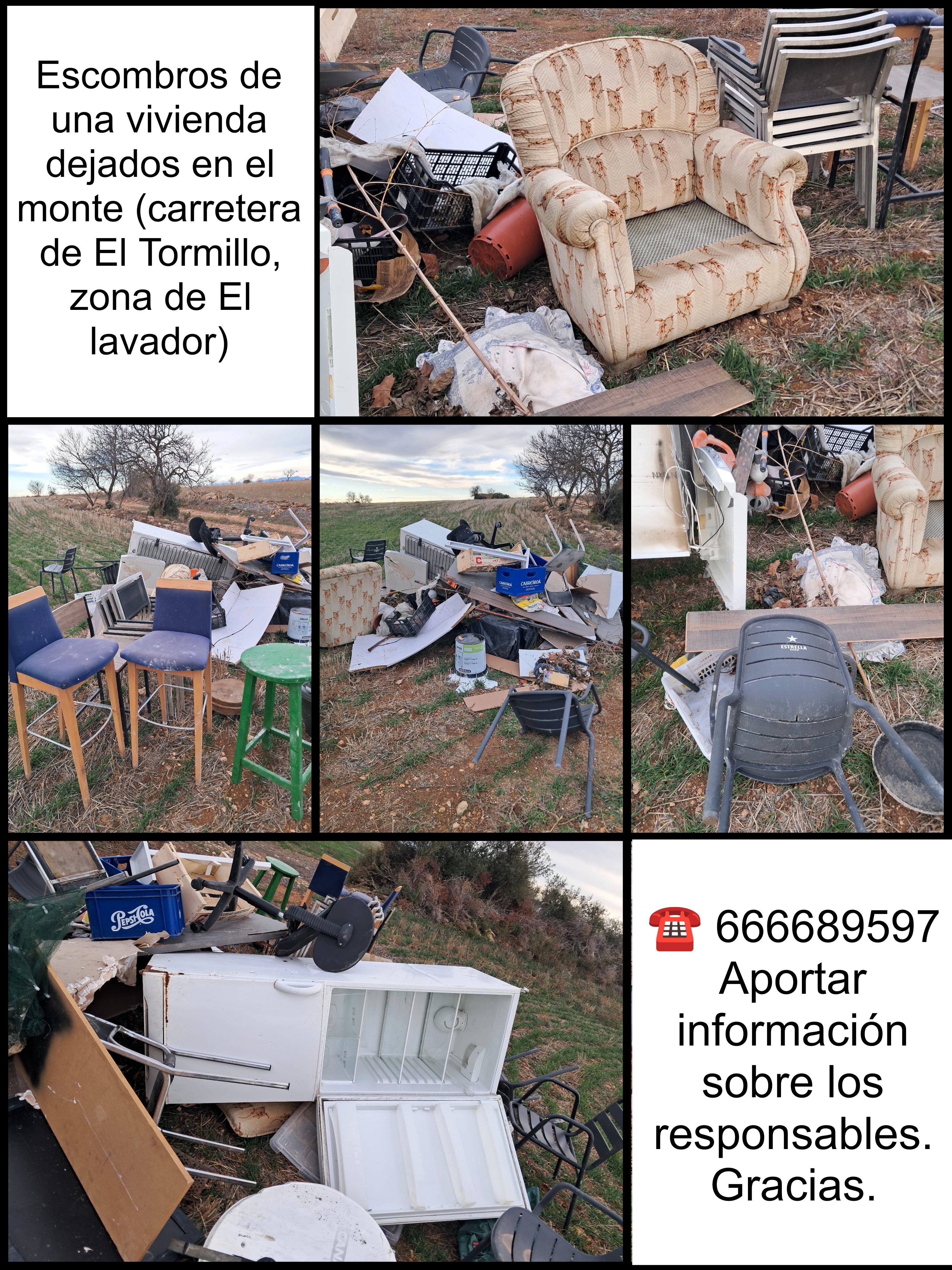 Han aparecido escombros de una vivienda en el monte de El Tormillo, en la zona de El lavador.