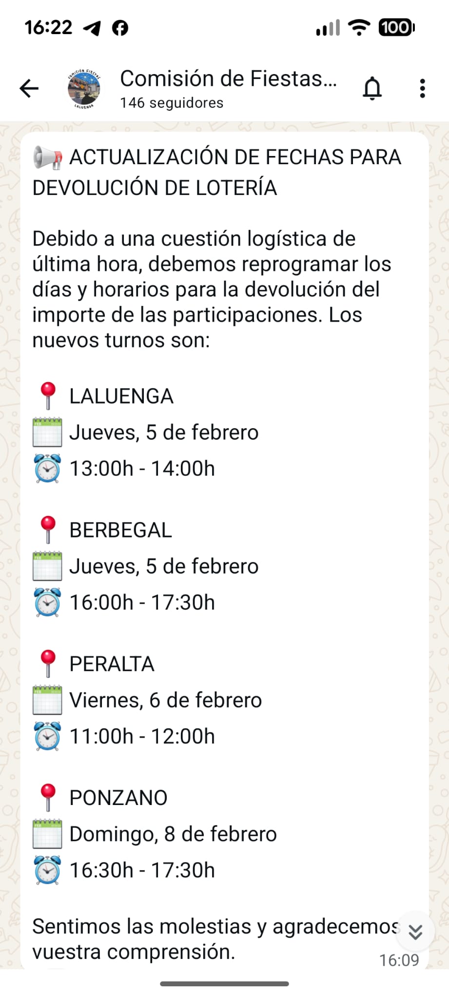 El Ayuntamiento de Peralta de Alcofea informa: