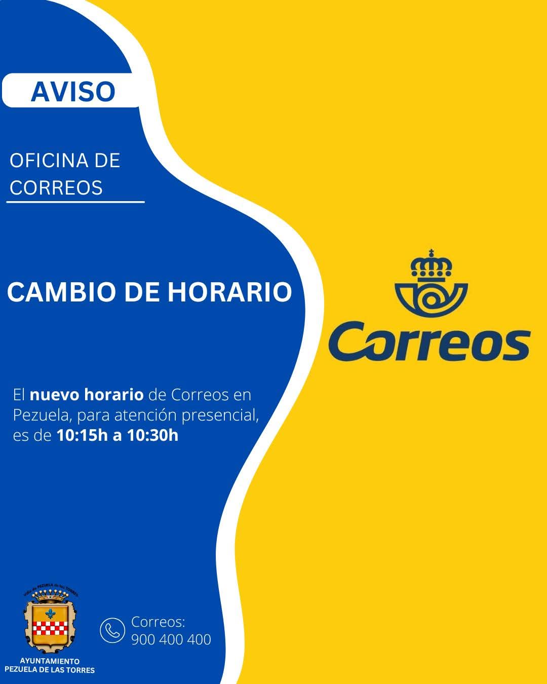 📬 Nos informan que el horario de atención presencial del cartero en Pezuela se modifica.