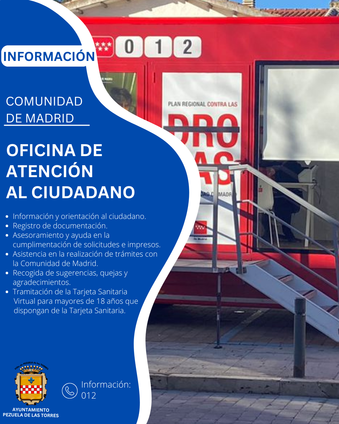 📍 Todos los miércoles, de 10:30h a 11:30h, la Oficina Móvil de Atención al Ciudadano de la Comunidad de Madrid estará en la Plaza de la Picota.