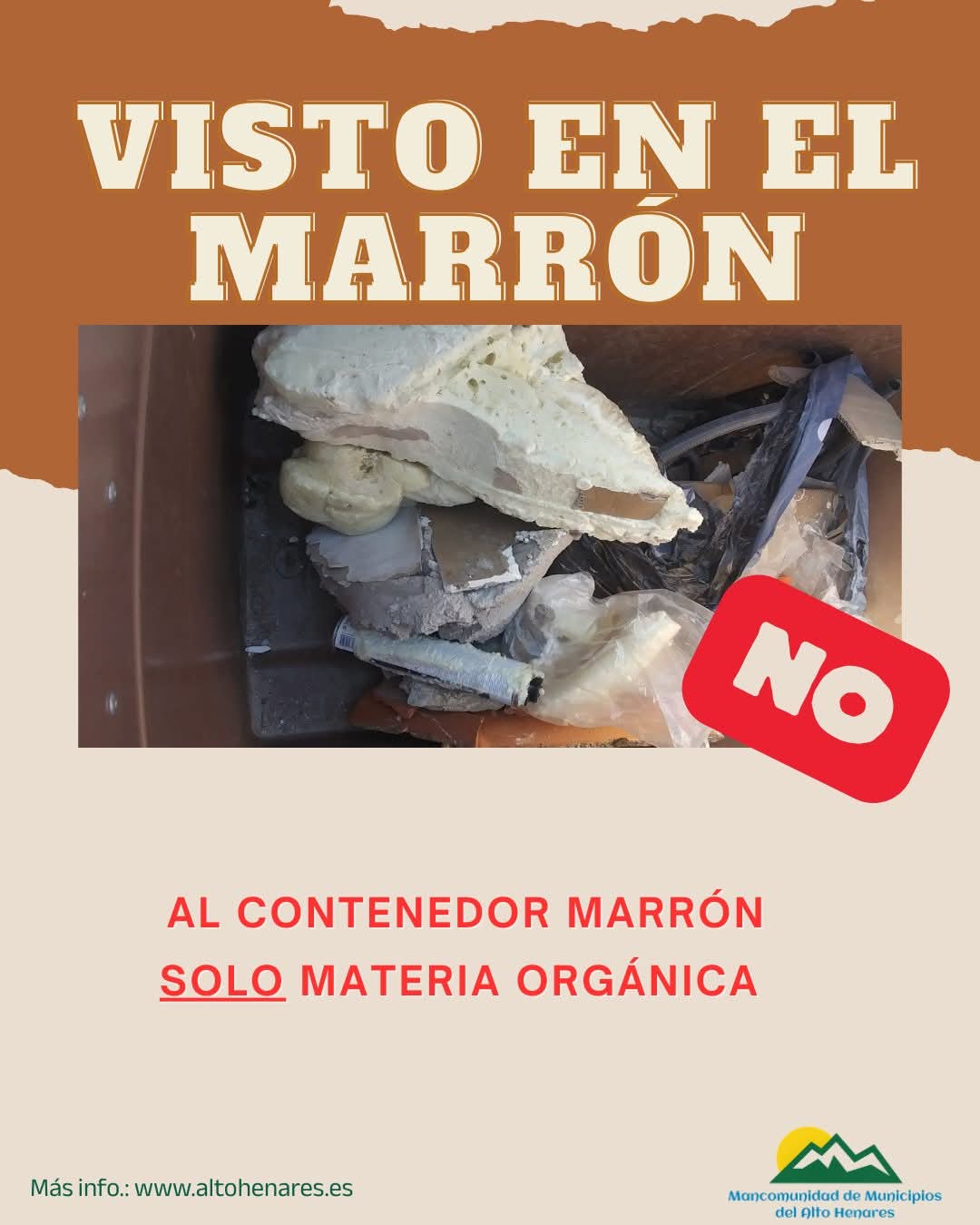 🟤 En las últimas semanas se ha detectado un uso incorrecto del contenedor marrón, donde se han depositado escombros y restos de obra, residuos que no corresponden a esta fracción.