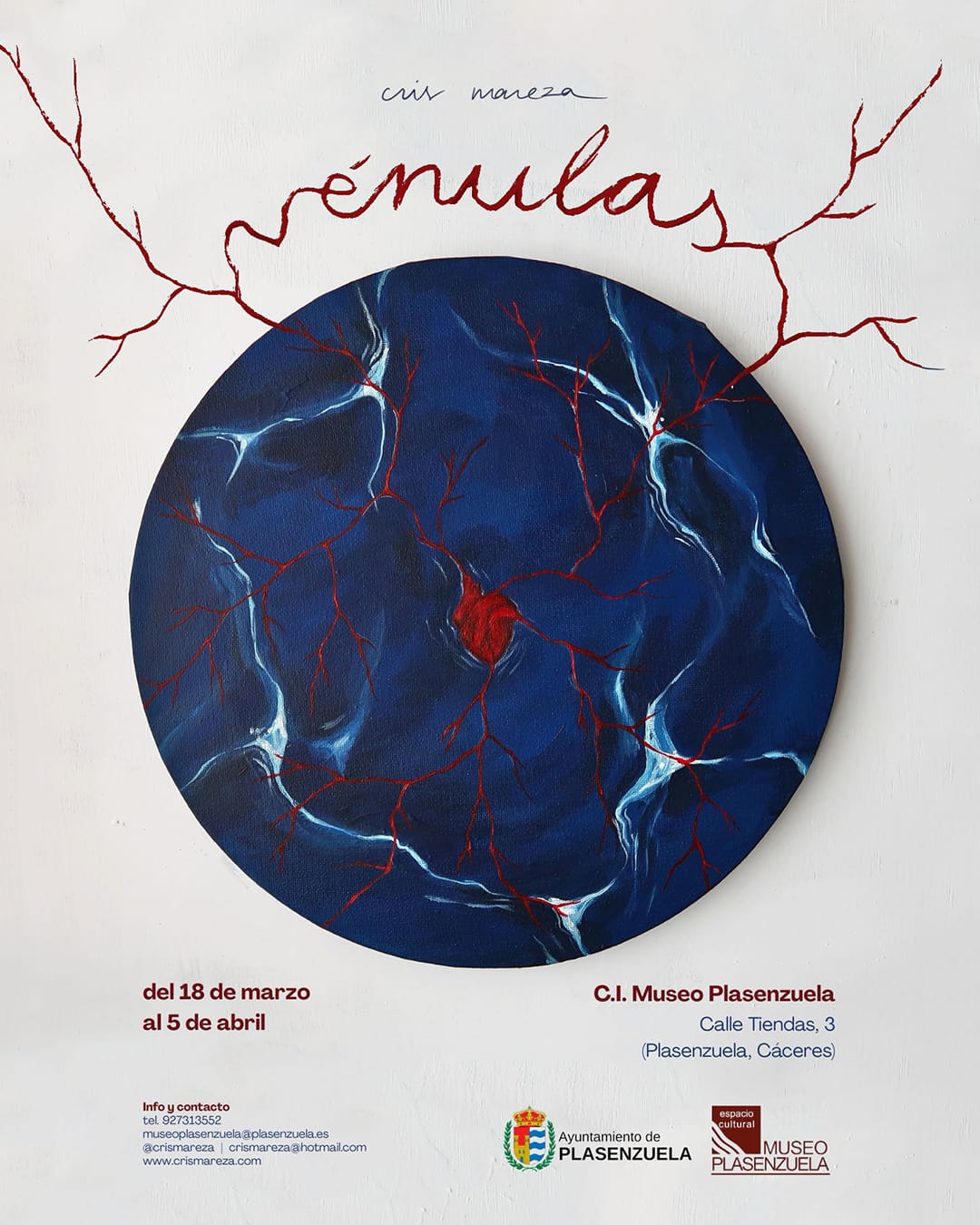 El C.I. Museo de Plasenzuela presenta la exposición “Vénulas”, de la artista Cris Mareza, una propuesta artística sugerente que explora las conexiones entre la naturaleza, el cuerpo y la emoción a través de formas y colores únicos.