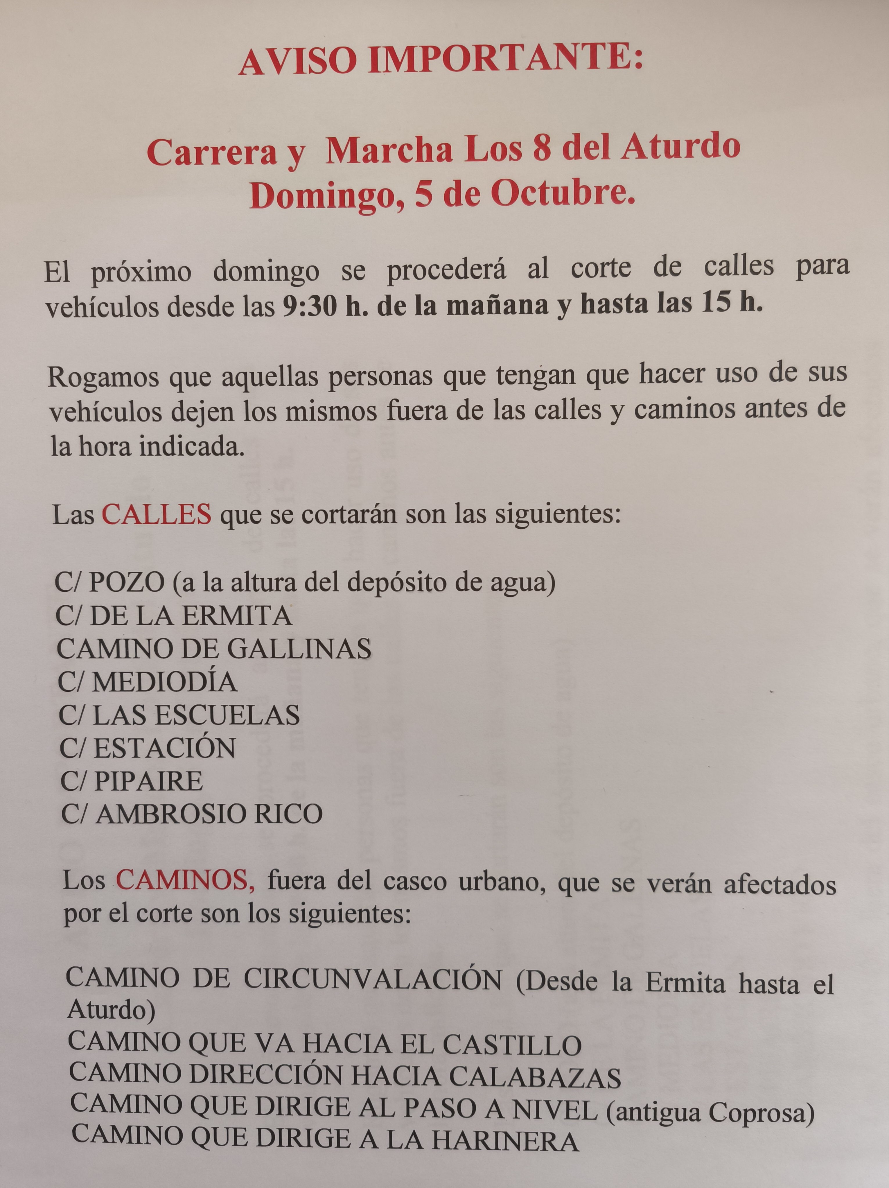 📅📅 En esta ocasión, tendrá lugar el DOMINGO, 5 de Octubre - 12 horas, con la salida y meta en el mismo lugar del pasado año: en las instalaciones deportivas del campo de fútbol y piscinas municipales (junto al depósito de agua)