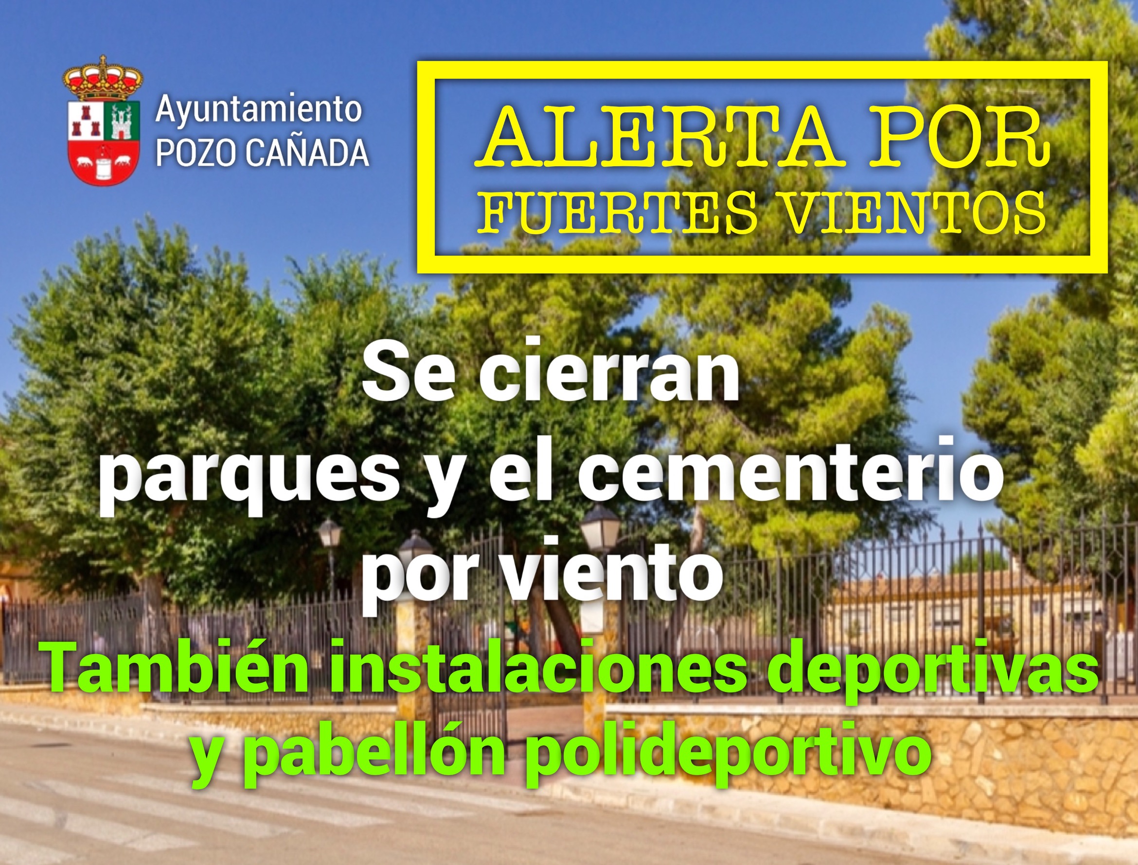Debido a los fuertes vientos se han cerrado los parques, cementerio, instalaciones deportivas y pabellón polideportivo hasta que cesen las condiciones meteorológicas y se garantice la seguridad.