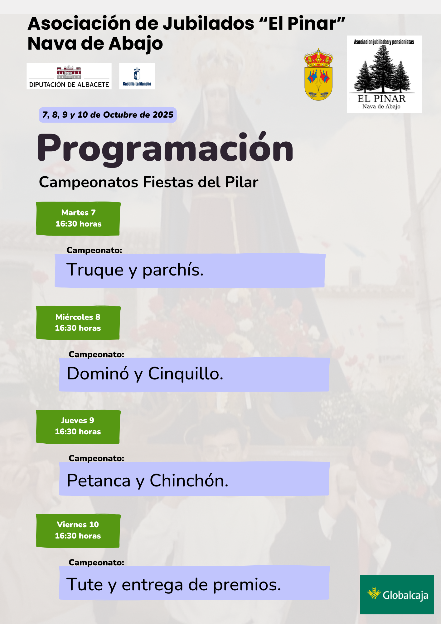 Adjuntamos programación de actos para la celebración de las Fiestas del Pilar en Nava de Abajo.