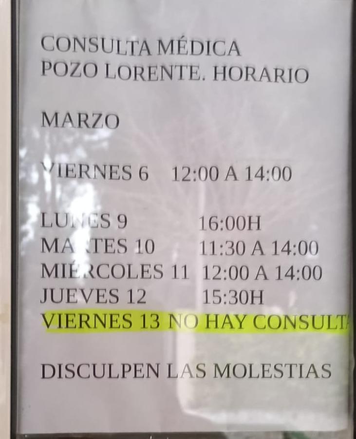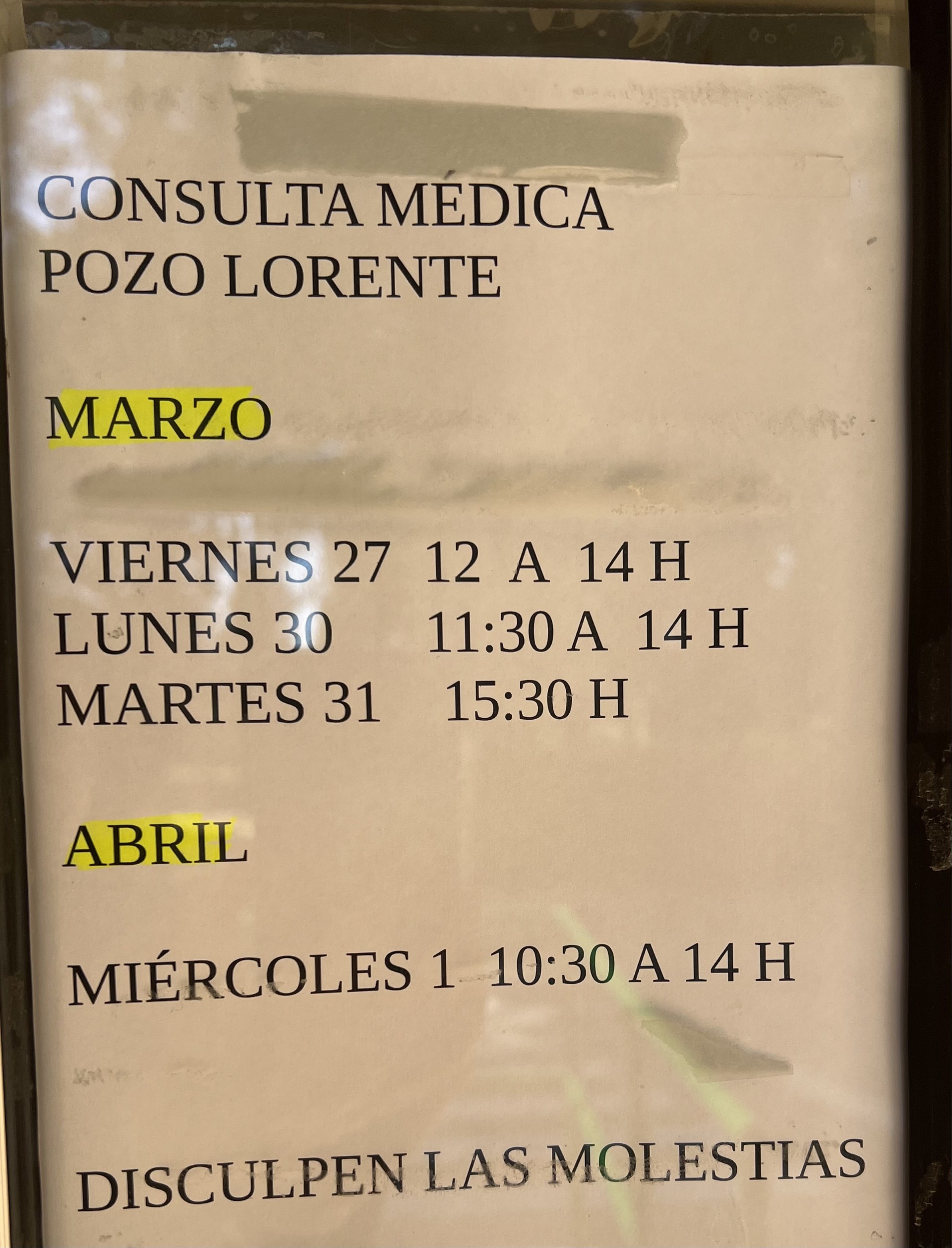 CAMBIOS EN EL HORARIO DE CONSULTA MÉDICA PARA LOS PRÓXIMOS DÍAS