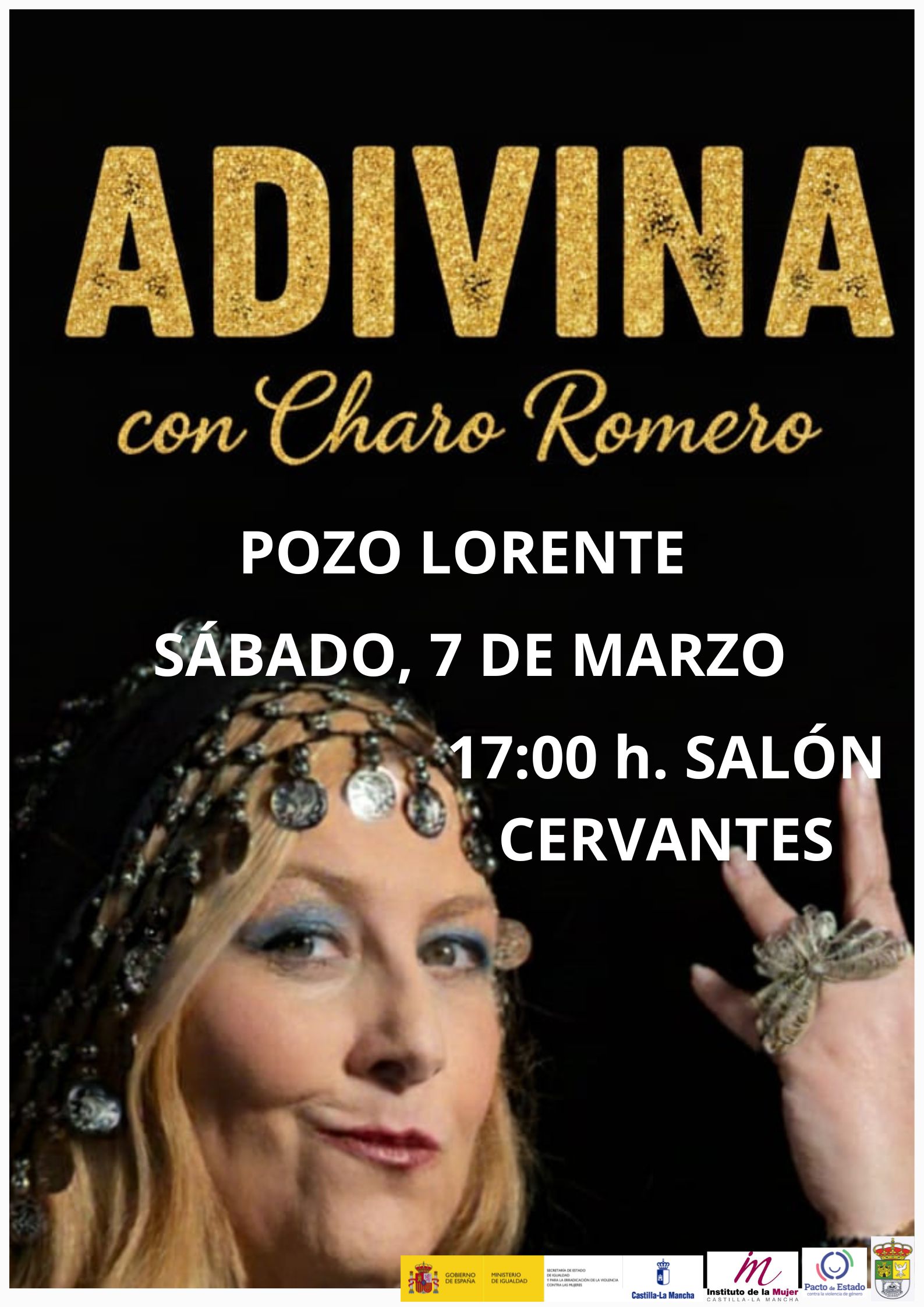 Dentro de la programación de actividades por el Día Internacional de las Mujeres, esta tarde a las 17:00 h. no puedes perderte el espectáculo "ADIVINA" protagonizado por CHARO ROMERO (Adivinación, tarot, numerología, astrología, posos de café... pero sobre todo HUMOR, mucho HUMOR). Se ofrecerá un café y pastas.